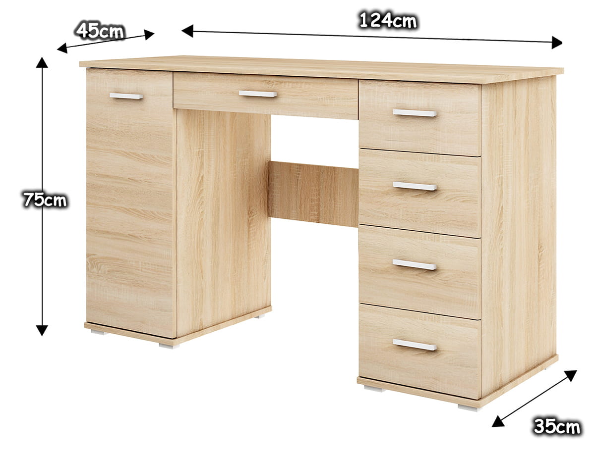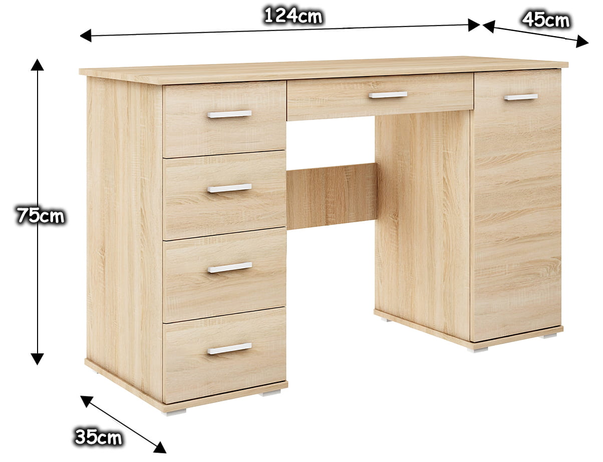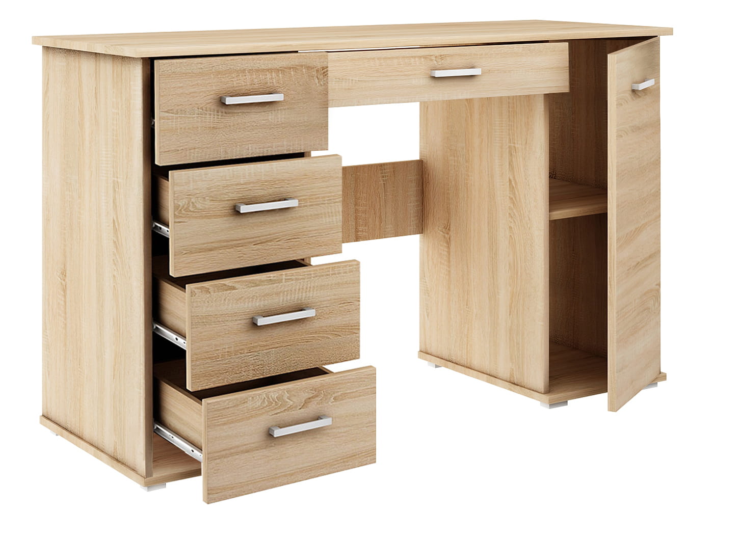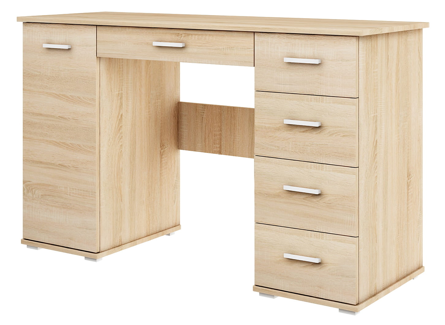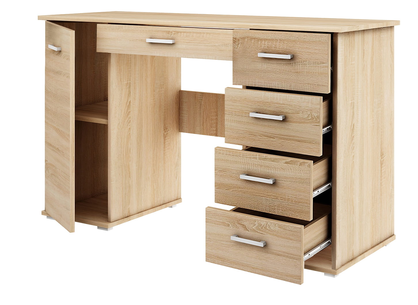 Nowoczesny design i funkcjonalność, to poszukiwane przez wszystkich połączenie, które znajdziesz w biurku ABS B2. Pojemna szafka z regulowaną półką i pięć szuflad oraz duży blat roboczy pozwolą ci cieszyć się wygodą i komfortem podczas nauki i pracy. Biurko jest uniwersalne - można zmontować je z szufladami po lewej lub prawej stronie.