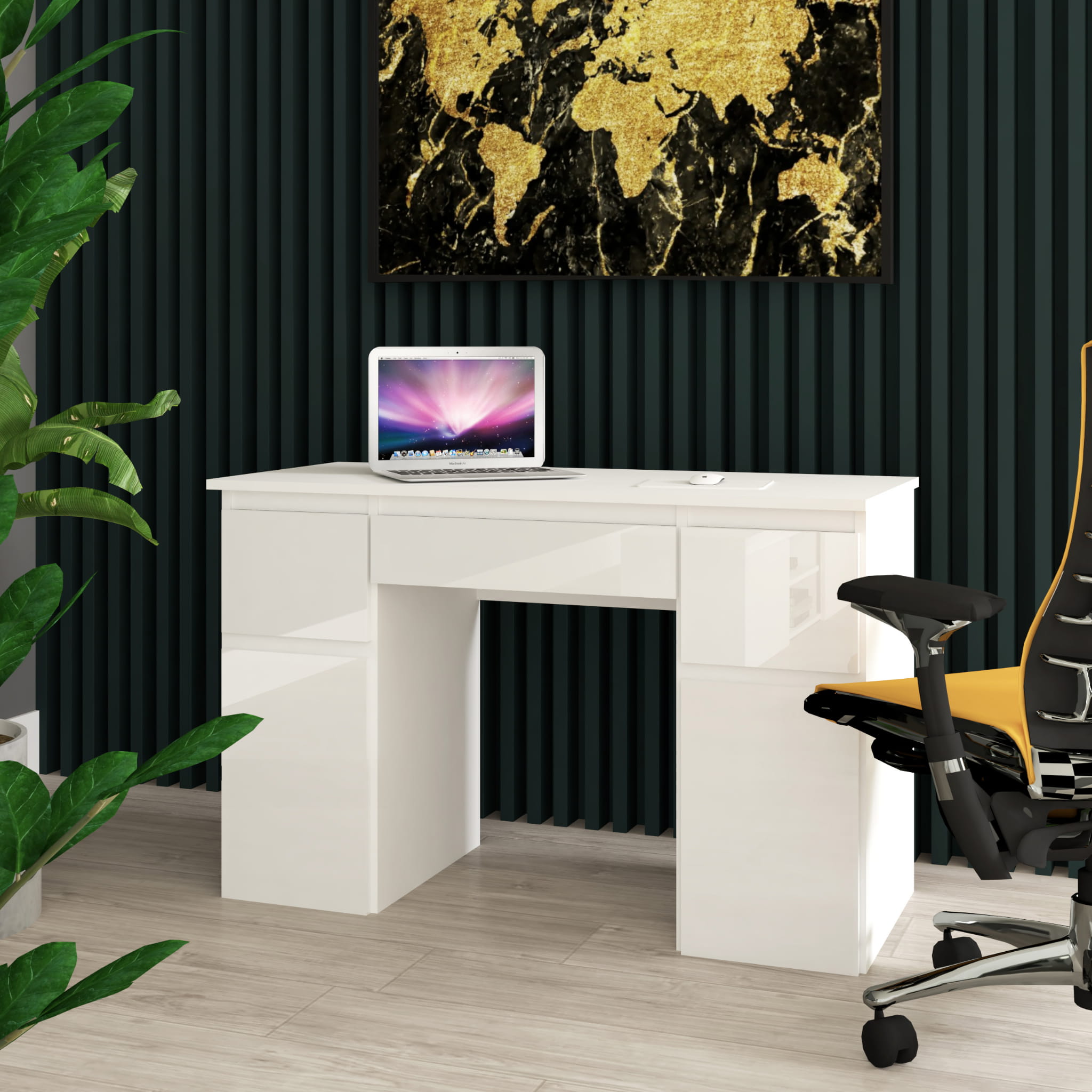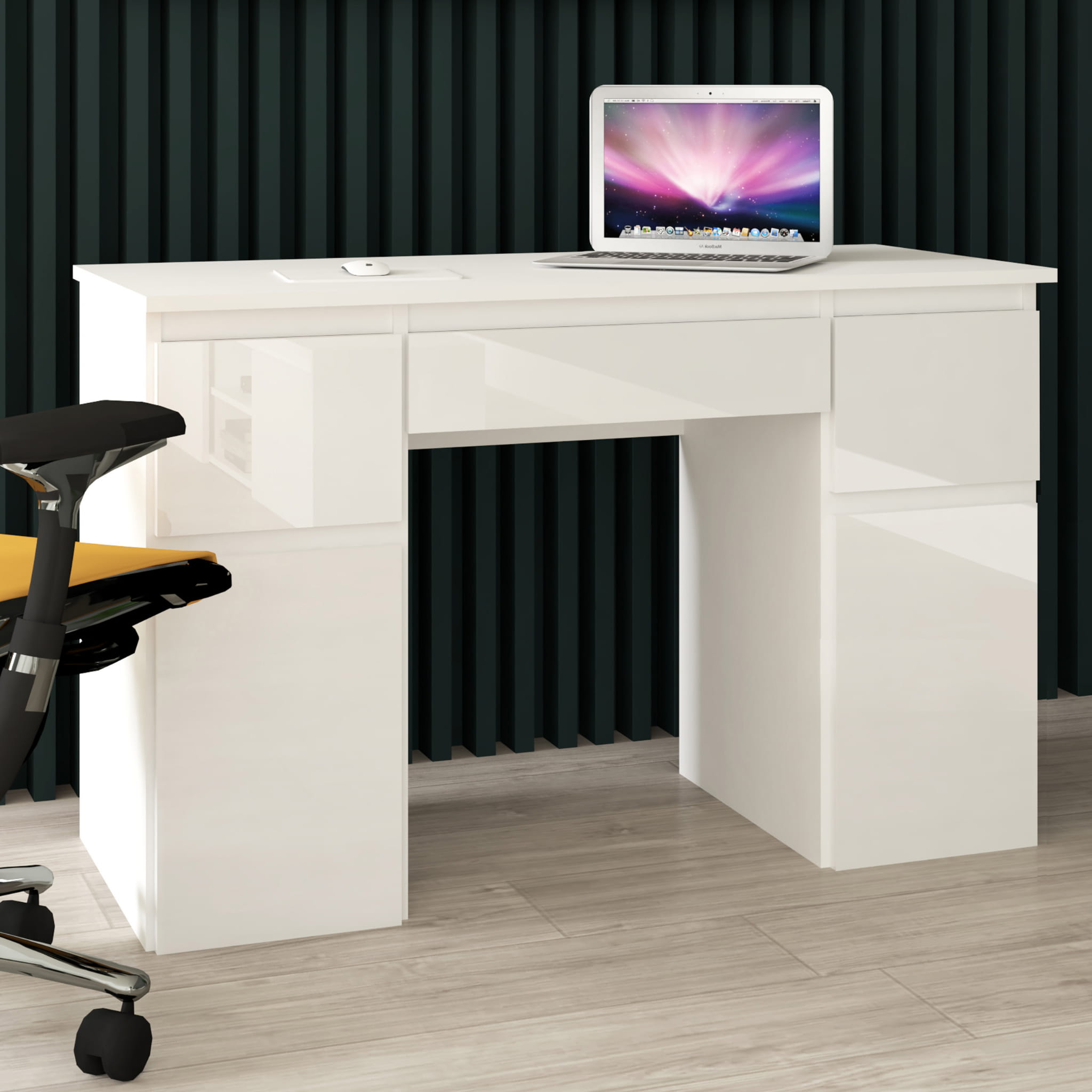 Nowoczesny design i funkcjonalność, to poszukiwane przez wszystkich połączenie, które znajdziesz w biurku Megan B1 . Dwie pojemne szafki z regulowaną półką i trzy szuflady oraz duży blat roboczy pozwolą ci cieszyć się wygodą i komfortem podczas nauki i pracy. Dzięki lakierowanym frontom biurka, wnętrze nabierze blasku i elegancji.
