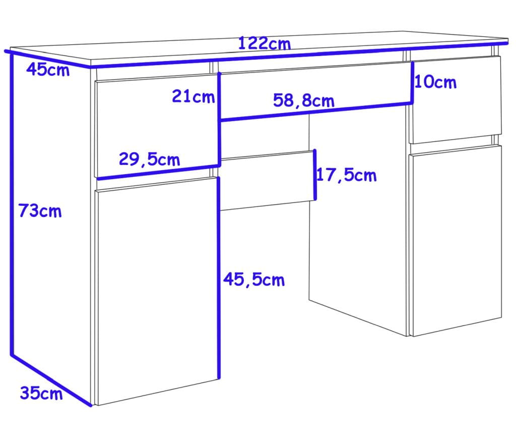 Nowoczesny design i funkcjonalność, to poszukiwane przez wszystkich połączenie, które znajdziesz w biurku Megan B1 . Dwie pojemne szafki z regulowaną półką i trzy szuflady oraz duży blat roboczy pozwolą ci cieszyć się wygodą i komfortem podczas nauki i pracy. Dzięki lakierowanym frontom biurka, wnętrze nabierze blasku i elegancji.