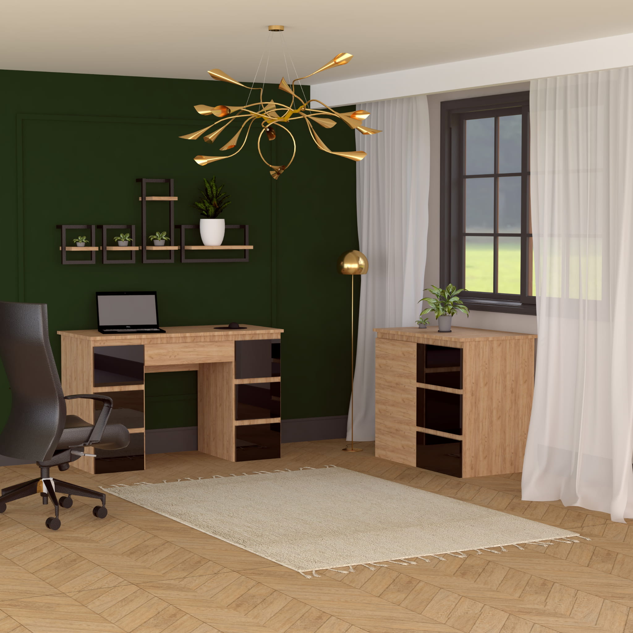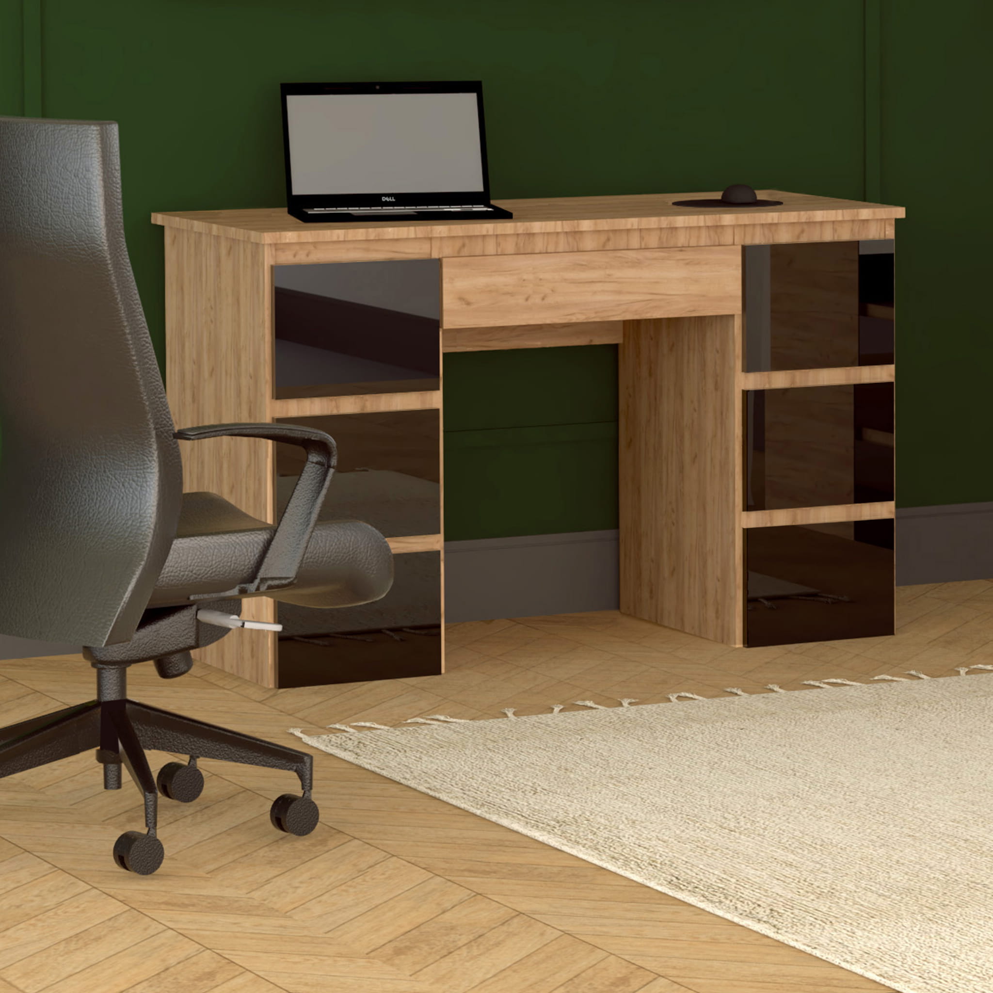 Biurko MEGAN B3 dąb craft złoty/czarne FRONTY POŁYSK