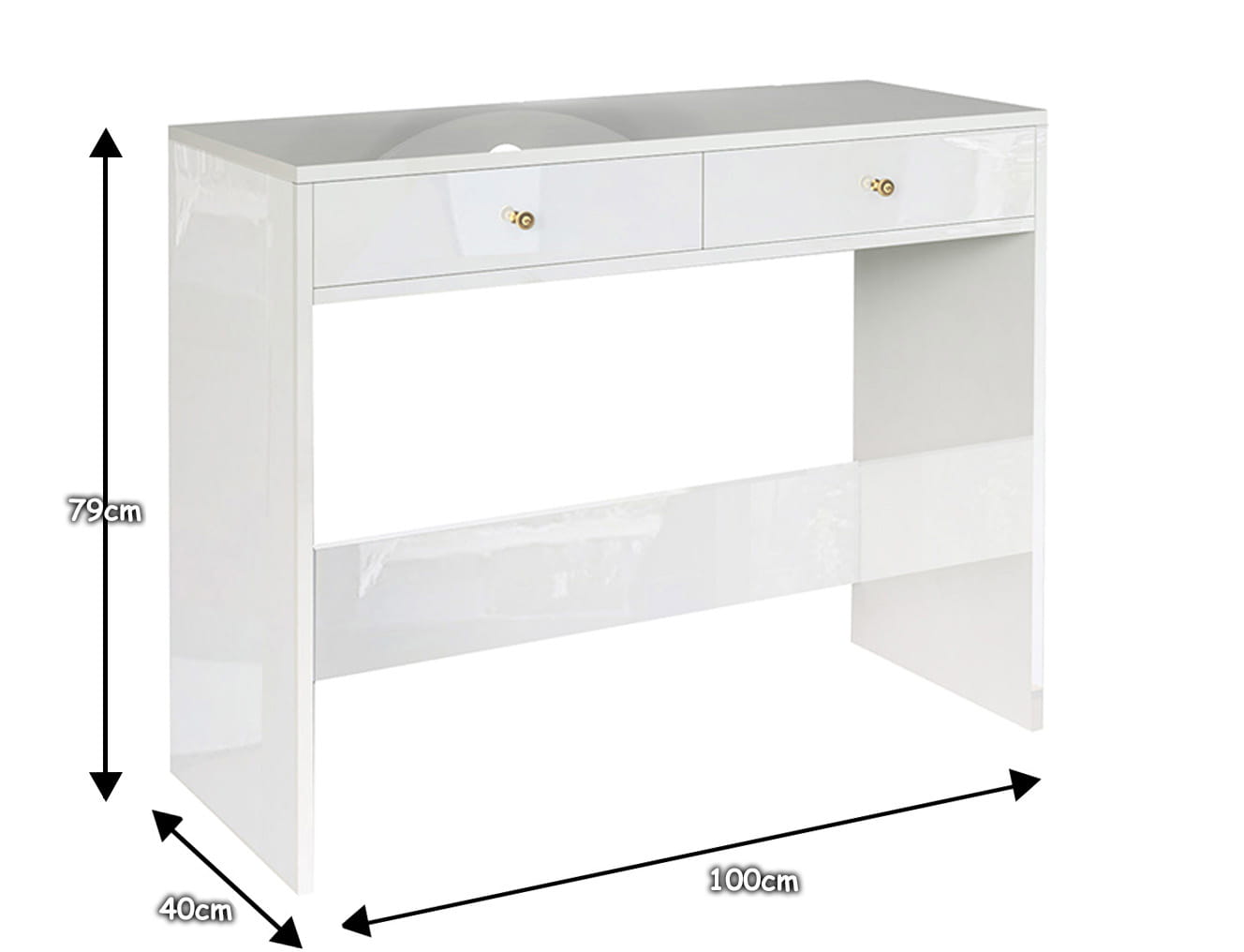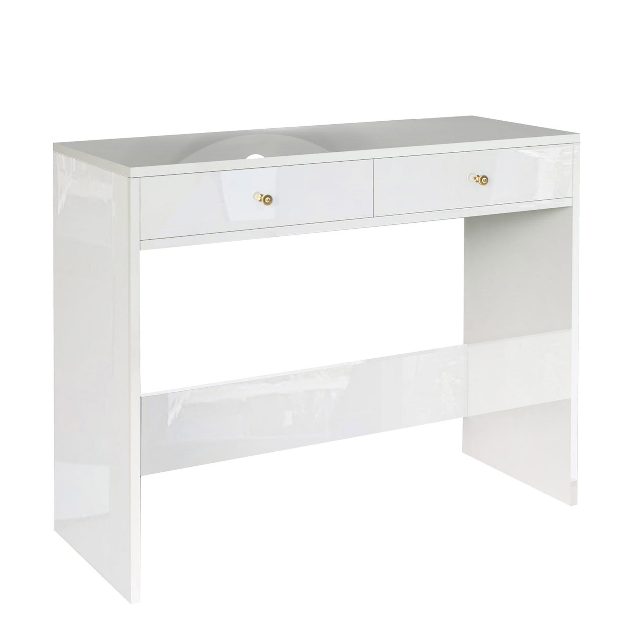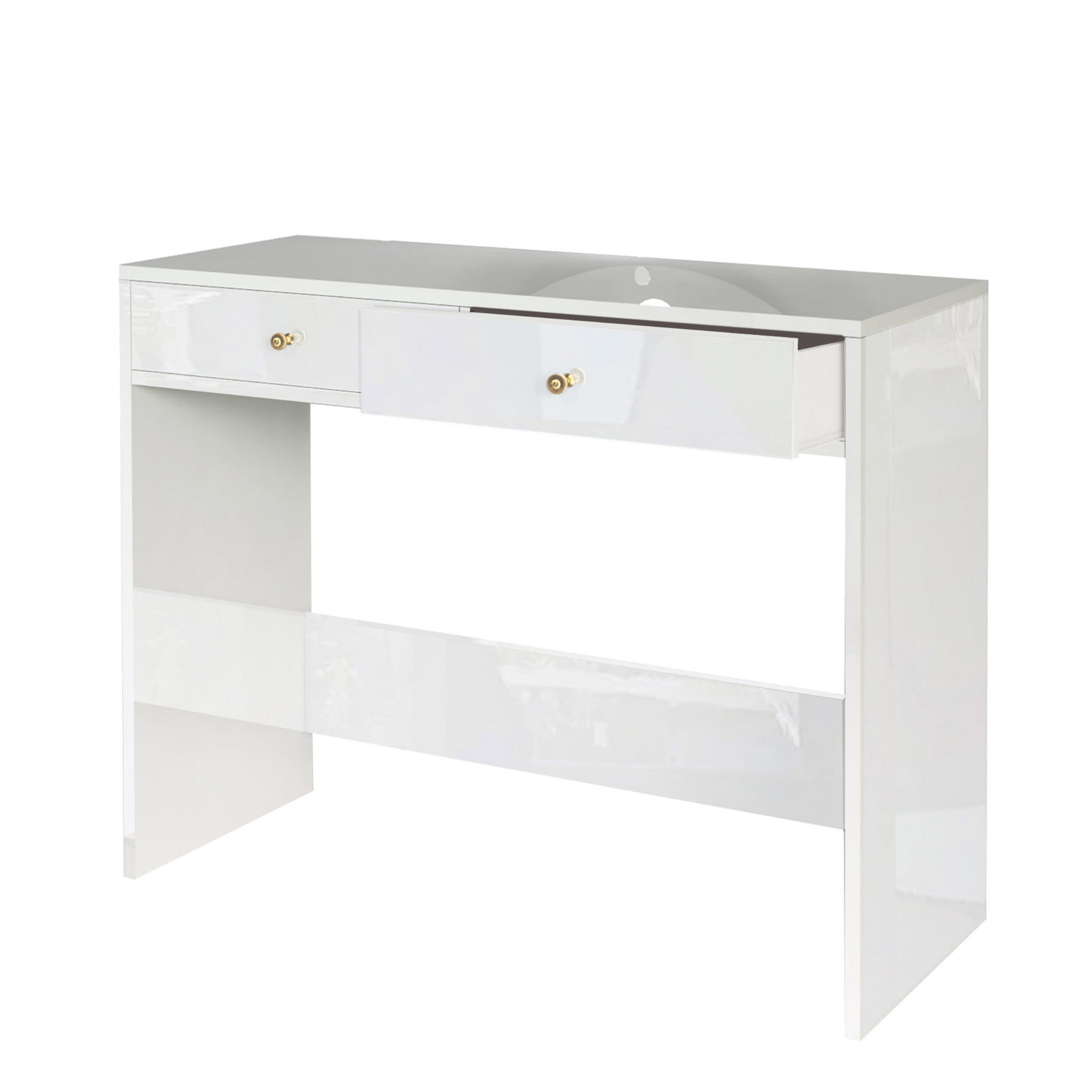 Biurko Mega to idealne rozwiązanie dla ludzi ceniących minimalizm i prostą formę. Dwie szufladki pomieszczą niezbędne drobiazgi. Doskonale wkomponujesz je w swoje wnętrze również jako nowoczesną konsolę. Wykonana jest w całości z płyty akrylowej na wysoki połysk o grubości 18mm oklejona ABS o grubości 10 mm. Dwa złote metalowe uchwyty dodadzą klasy i elegancji.