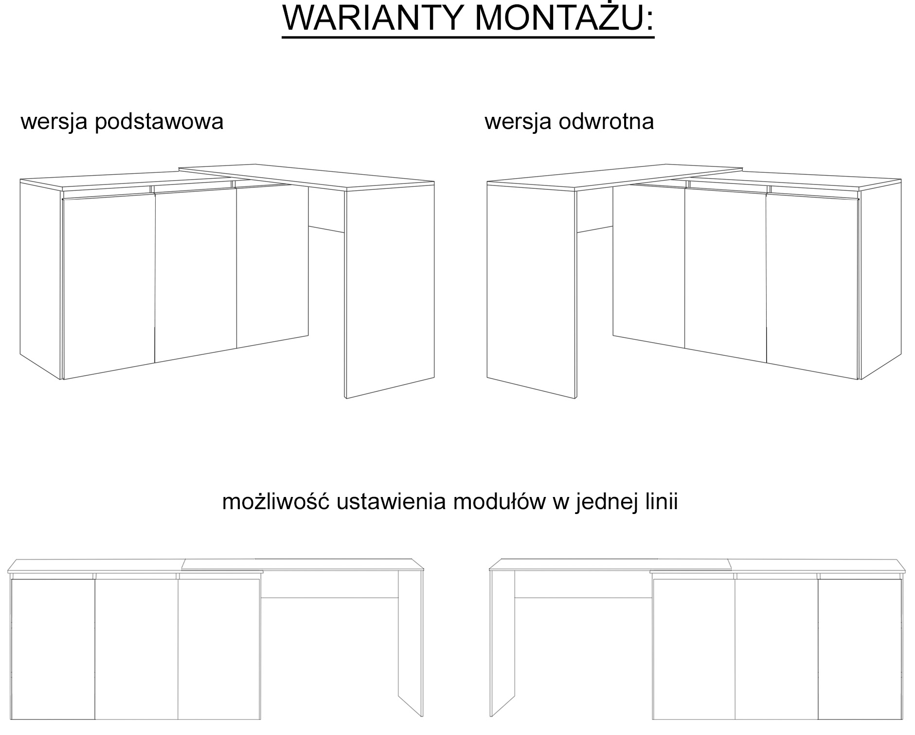 Biurko jest uniwersalne- sam zdecydujesz czy zmontować je na stronę lewą czy prawą. W komplecie znajdują się wszystkie niezbędne do montażu akcesoria oraz instrukcja.