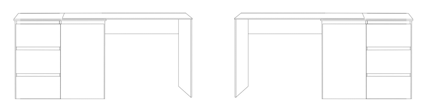 Biurko jest uniwersalne- sam zdecydujesz czy zmontować je na stronę lewą czy prawą. W komplecie znajdują się wszystkie niezbędne do montażu akcesoria oraz instrukcja.