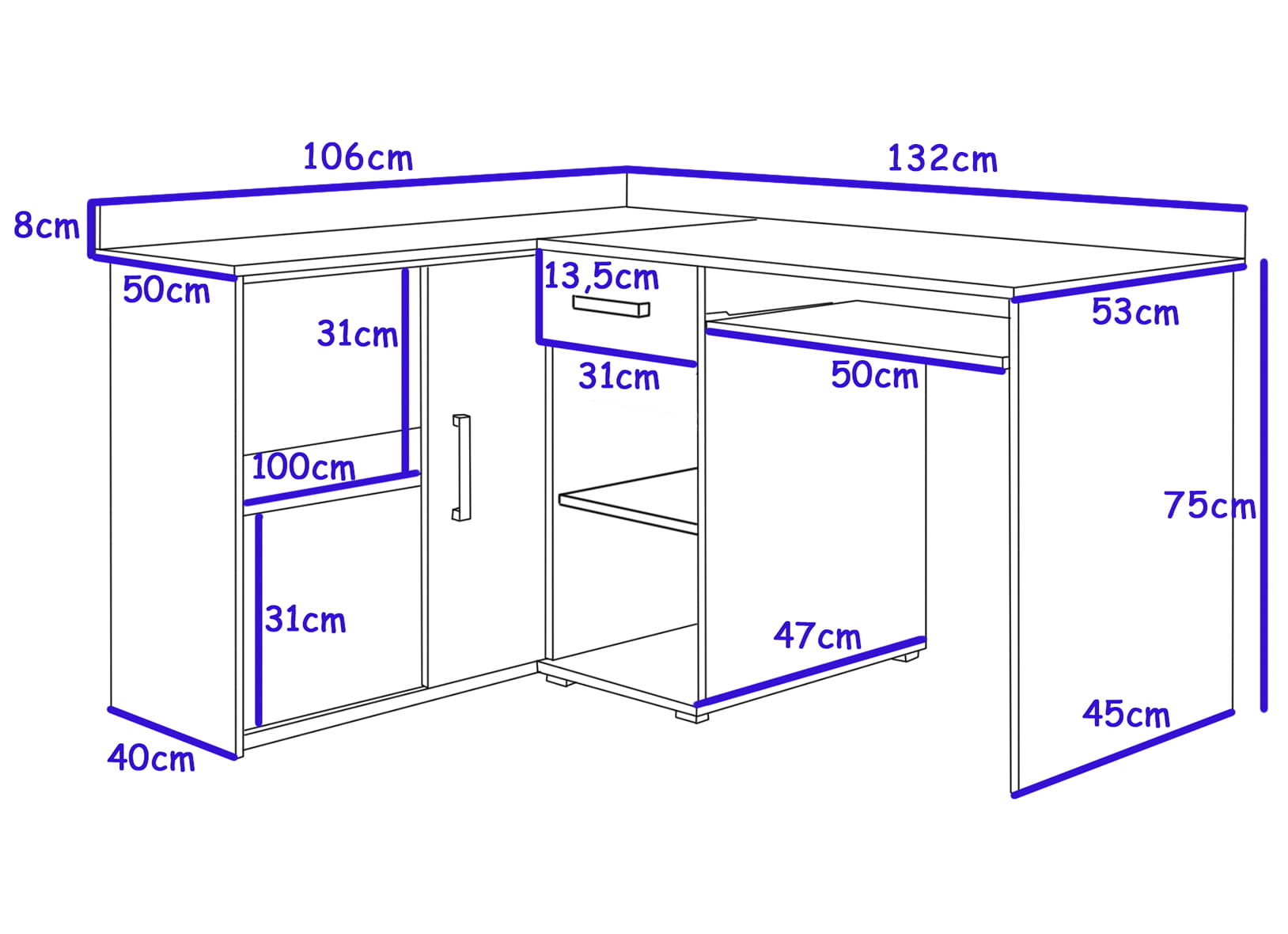 Biurko narożne Michał I, to profesjonalna propozycja do Twojego biura i gabinetu. Biurko możesz ustawić w dowolnym miejscu, ponieważ jest oklejone z każdej strony. Możesz również zmontować biurko w wersji odwrotnej, gdyż jest uniwersalne. Pojemna szafka z przesuwnymi drzwiczkami pomieści dokumenty. Półka na klawiaturę i duży blat roboczy zapewni Ci wyjątkowy komfort i wygodę. W komplecie znajdują się listwy przyblatowe, lecz decyzja o ich montażu należy do Ciebie!