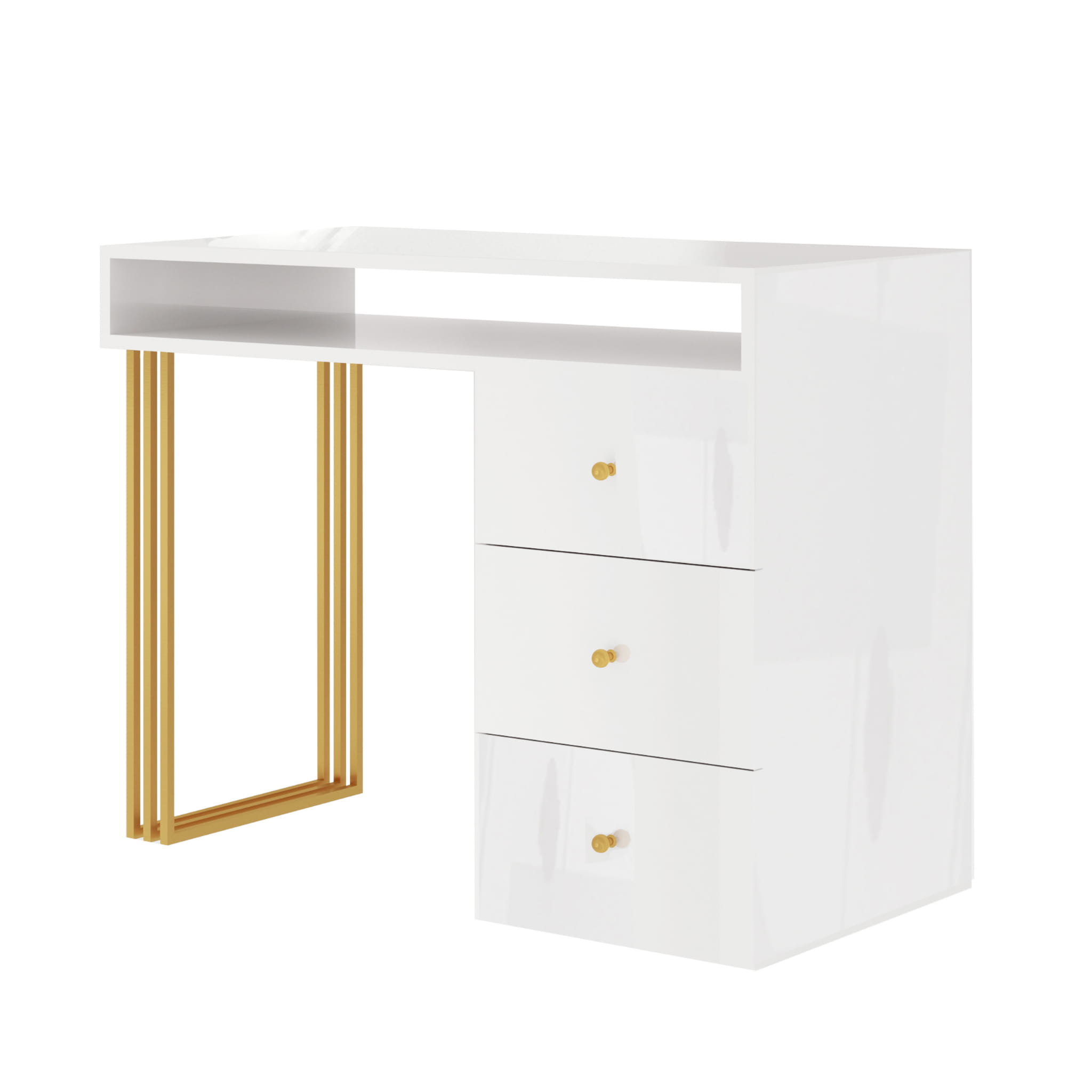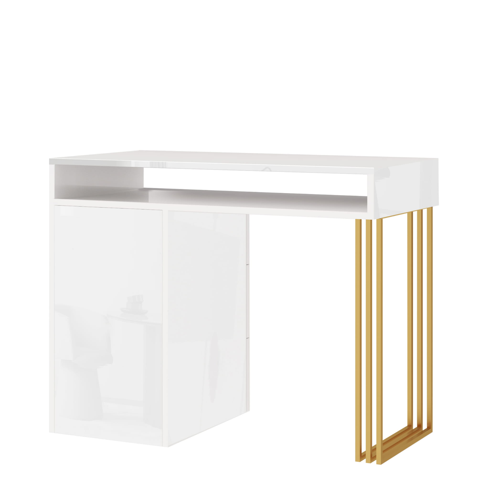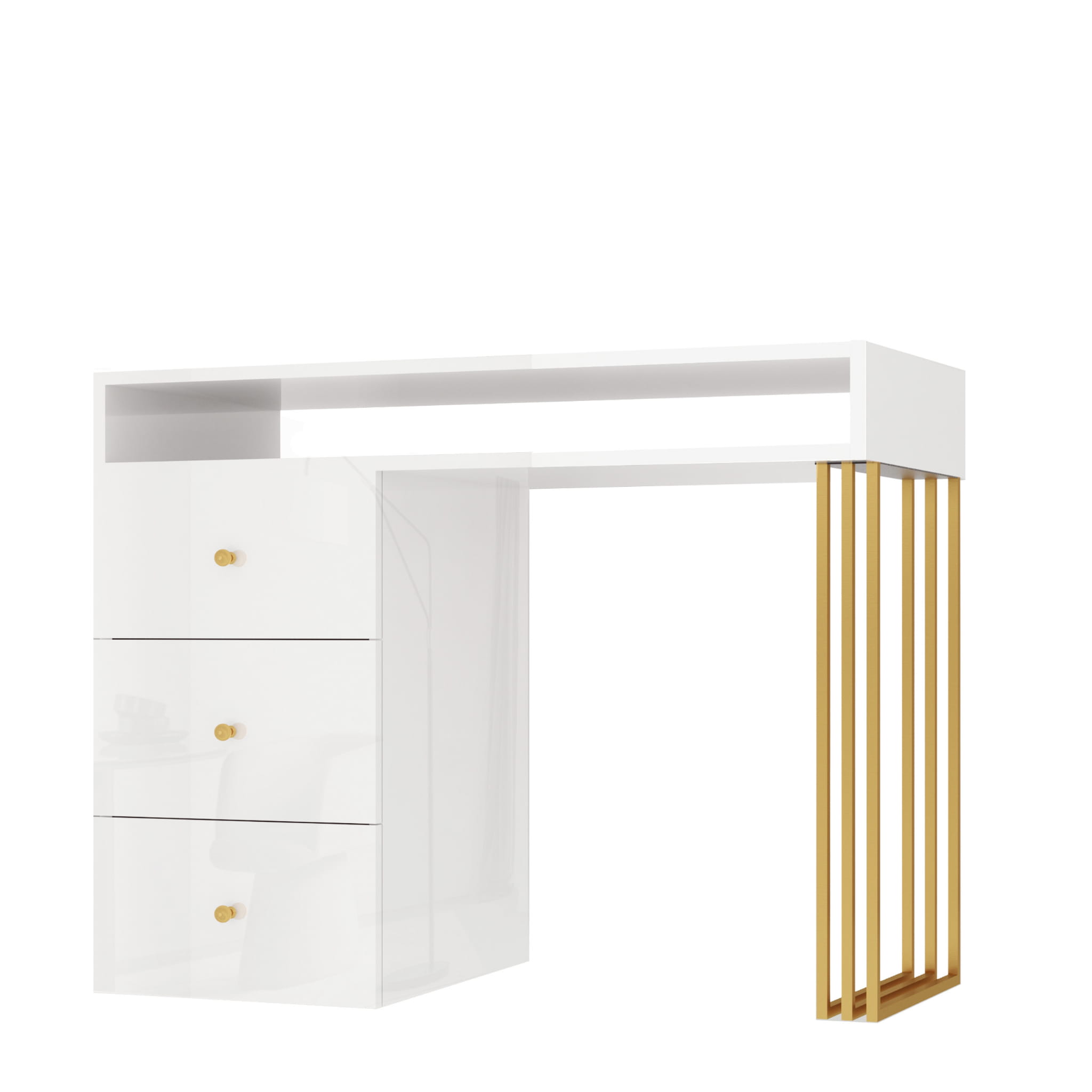 Biurko wolnostojące KLARA z szufladami 100 cm biały POŁYSK/złoty