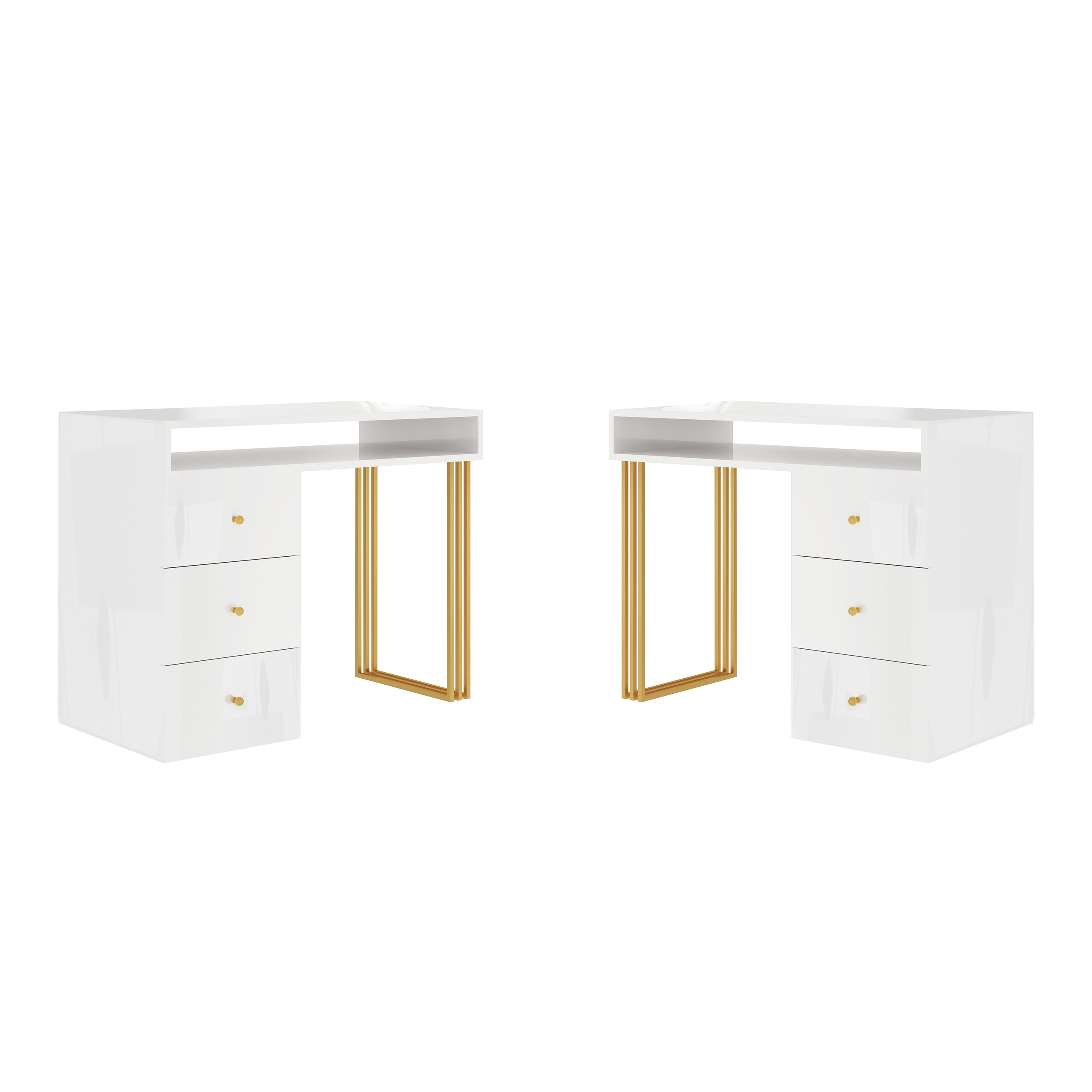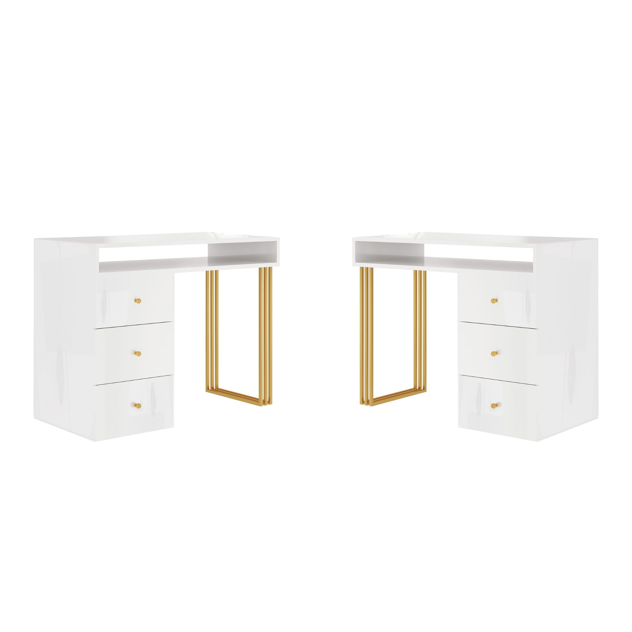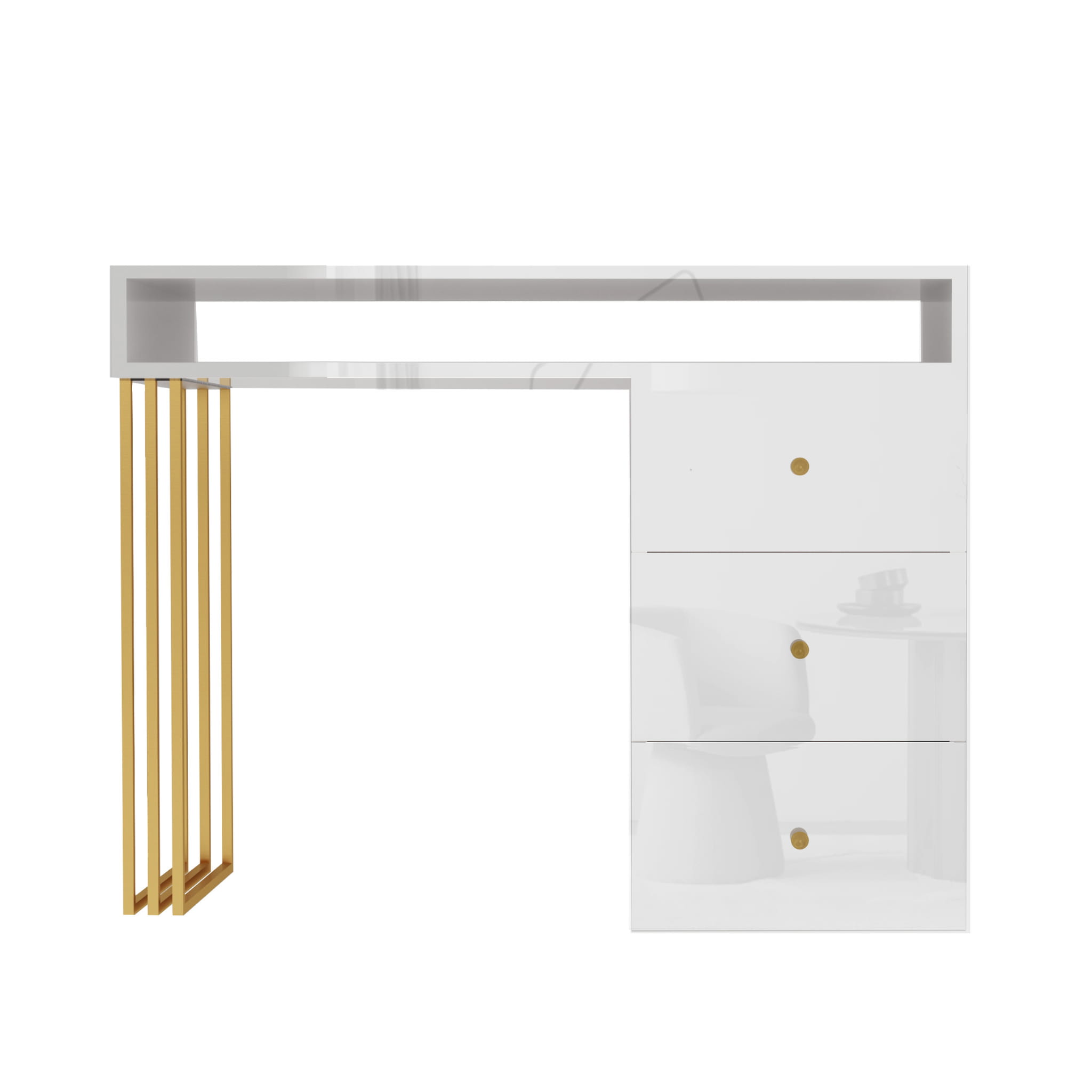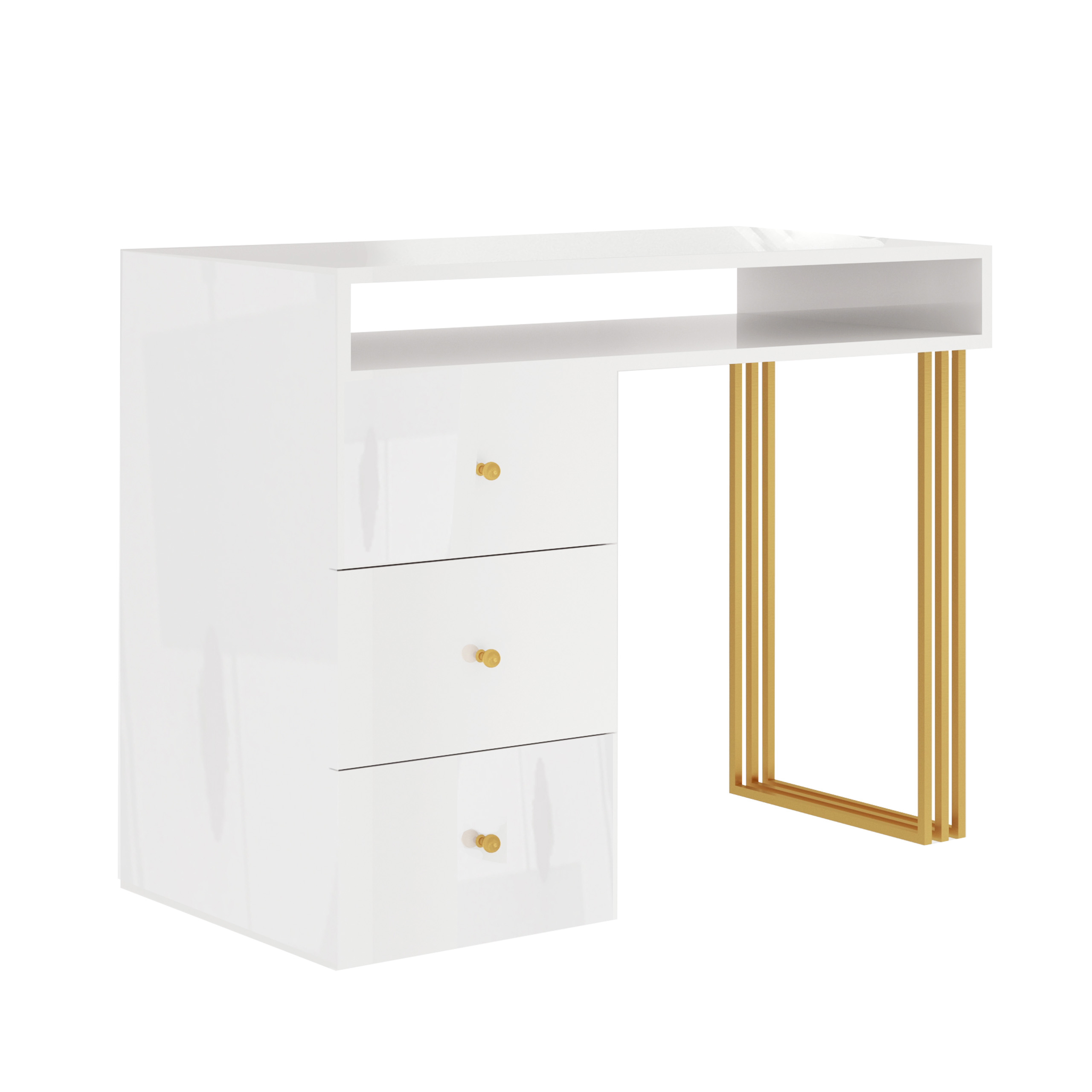 Biurko wolnostojące KLARA z szufladami 100 cm biały POŁYSK/złoty