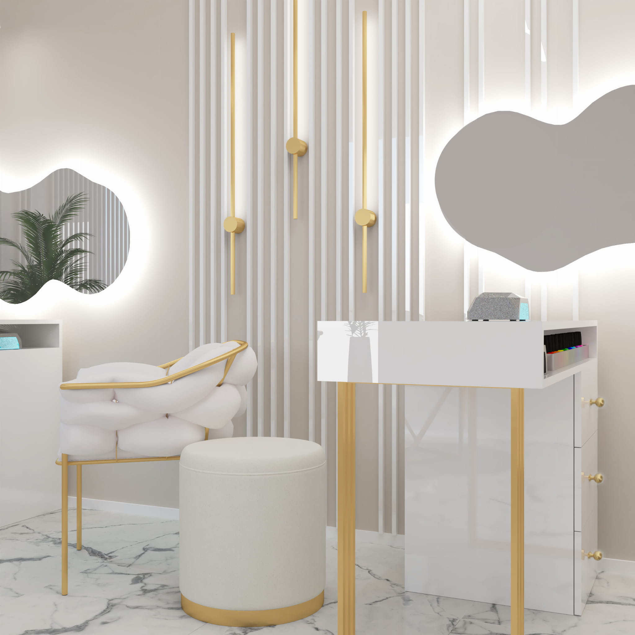 Biurko wolnostojące Klara 100 cm na metalowych nogach. Całość biurka wykonana jest z płyty meblowej w kolorze biały połysk. Złote nogi i uchwyty pięknie podkreślają kolor mebla. Doskonale pasuje do wnętrz nowoczesnych, w stylu glamour i art deco. Biurko z trzema szufladami i otwartym schowkiem pod blatem zapewni wiele miejsca do przechowywania. Meble z sytemu Klara to najmodniejszy design i gwarancja najwyższej jakości wykonania.