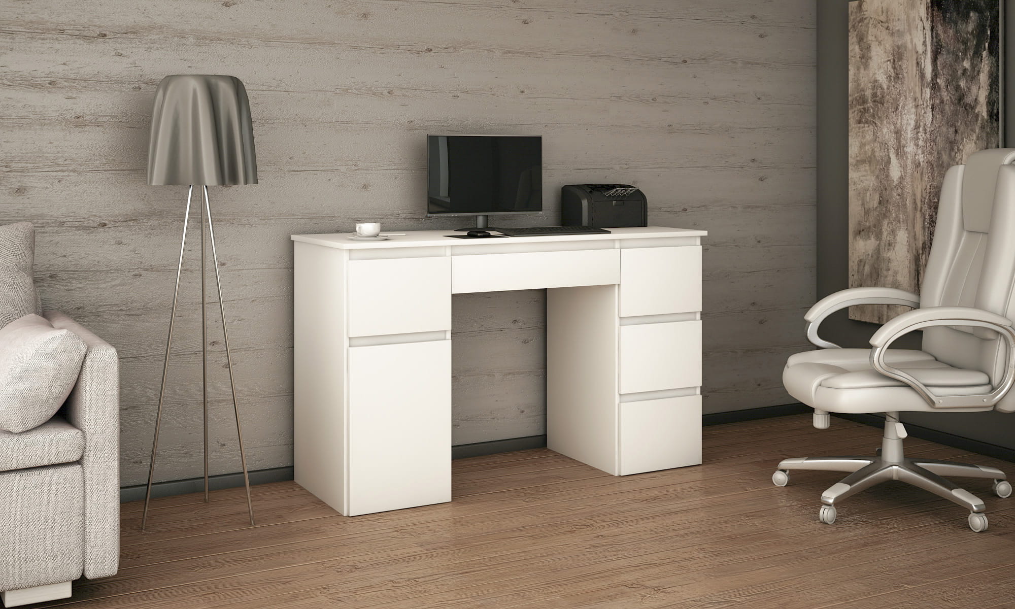 Nowoczesny design i funkcjonalność, to poszukiwane przez wszystkich połączenie, które znajdziesz w biurku Megan B2. Pojemna szafka z regulowaną półką i pięć szuflad oraz duży blat roboczy pozwolą ci cieszyć się wygodą i komfortem podczas nauki i pracy.