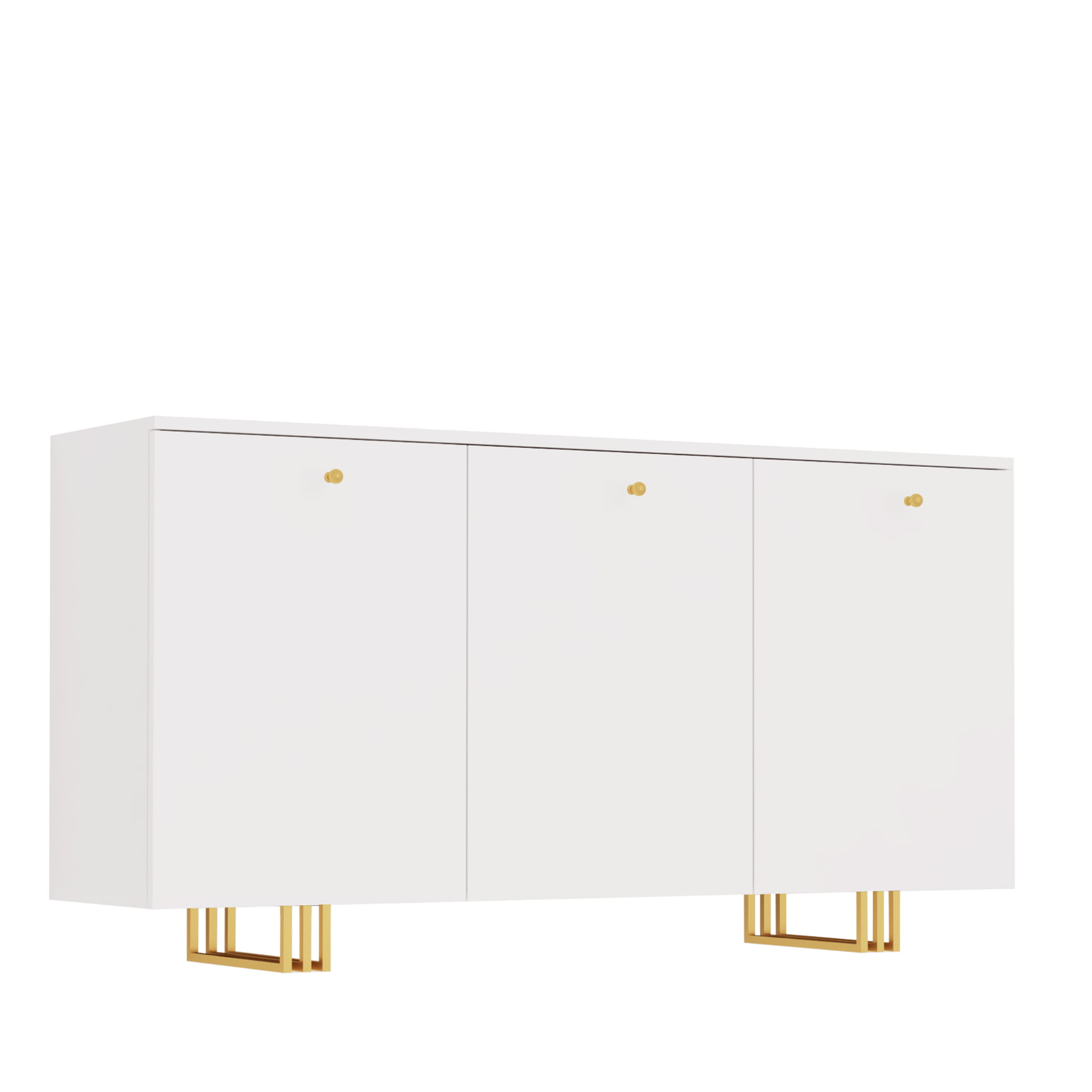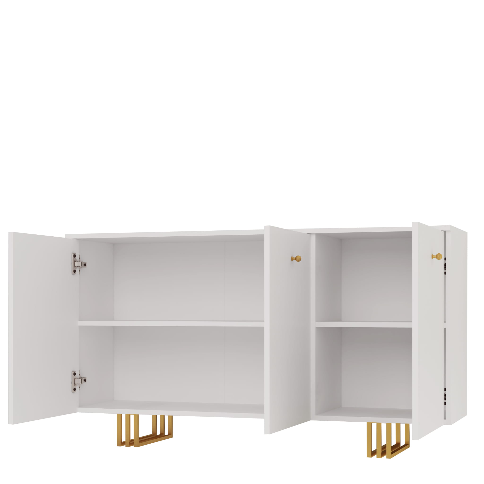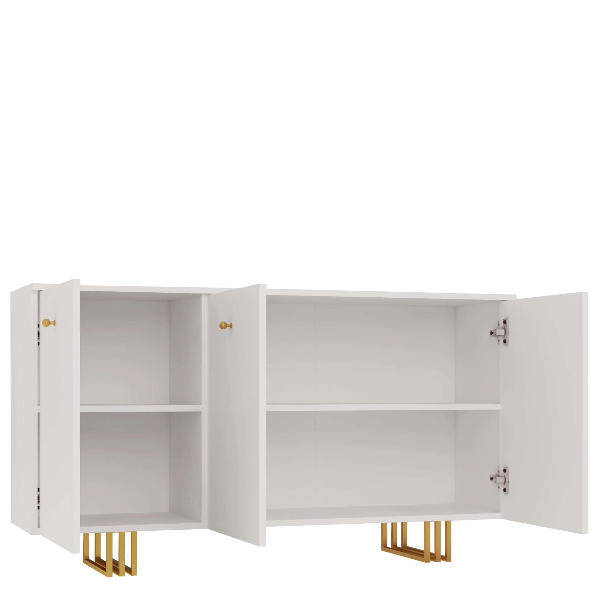 Komoda KLARA z szafkami 150 cm biały mat/złoty