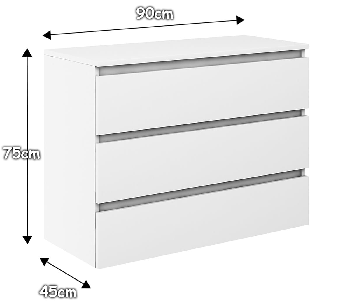 Komoda MEGAN K3 z trzema szufladami 90 cm biała