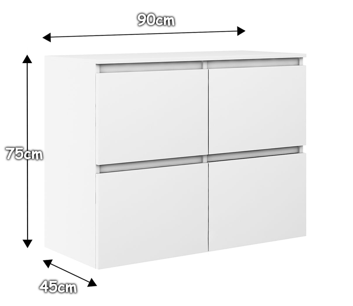 Komoda MEGAN K4 z szafkami 90 cm biała
