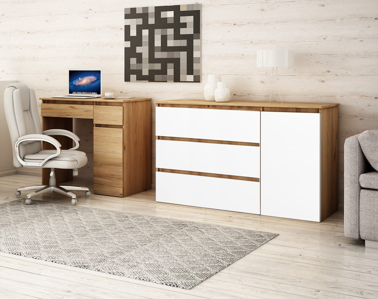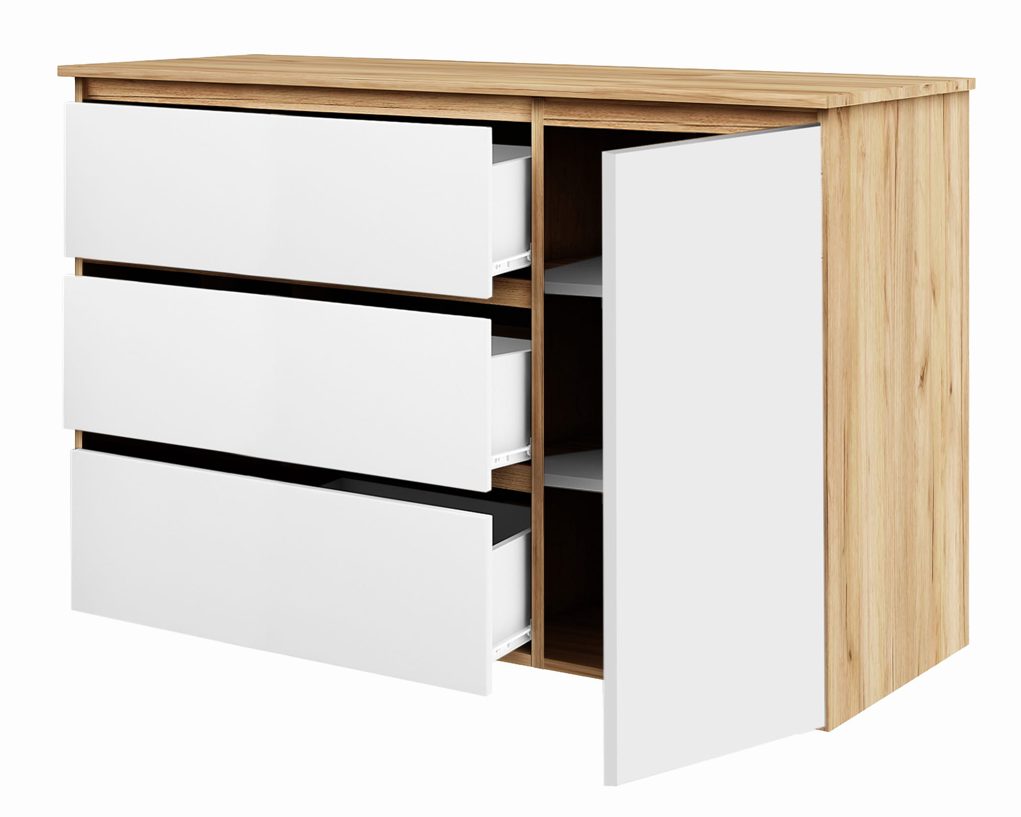Komoda MEGAN K5 z szafką i szufladami 120 cm dąb złoty/biały