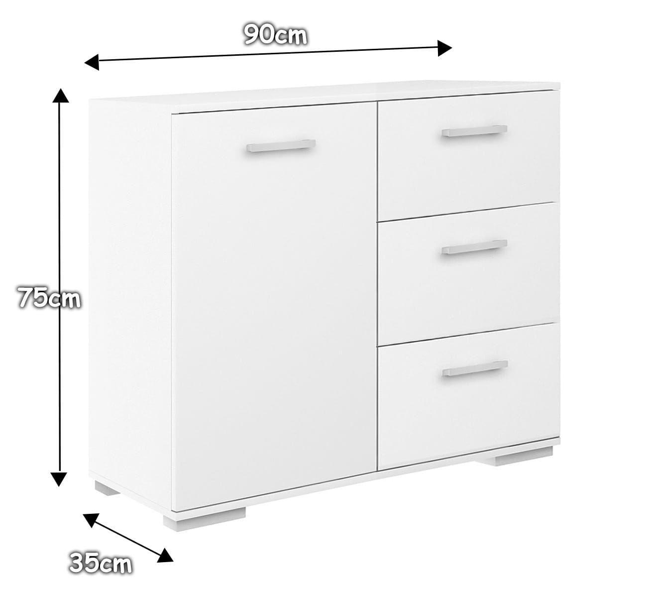 Niezwykle pakowna i praktyczna komoda ABS-90 K2 to funkcjonalność, która idzie w parze z nowoczesnym wyglądem. Komoda z trzema szufladami i jedną szafką, dzieloną wewnątrz dwoma półkami zapewni Ci wygodę użytkowania. Doskonale wpisze się w każde wnętrze!