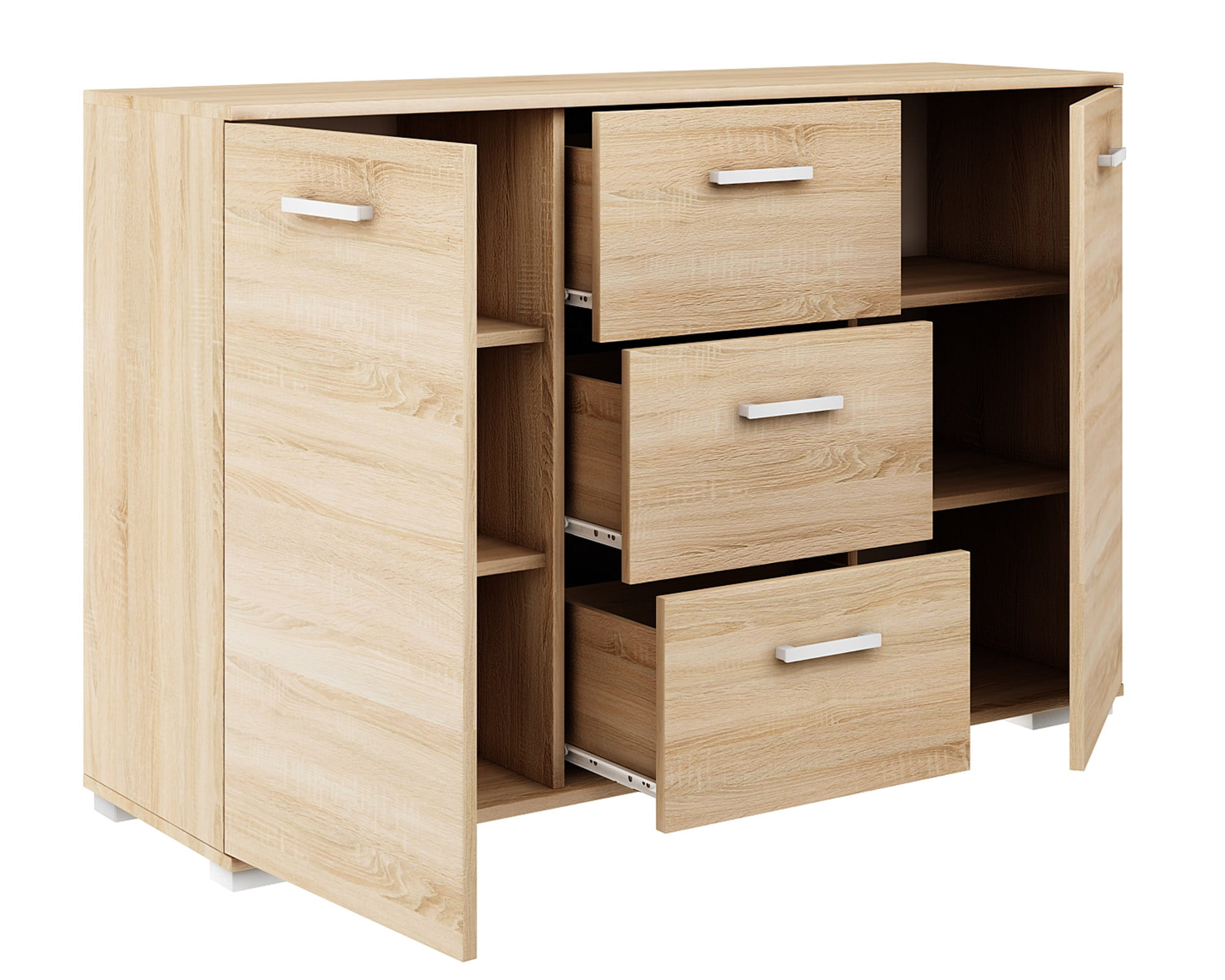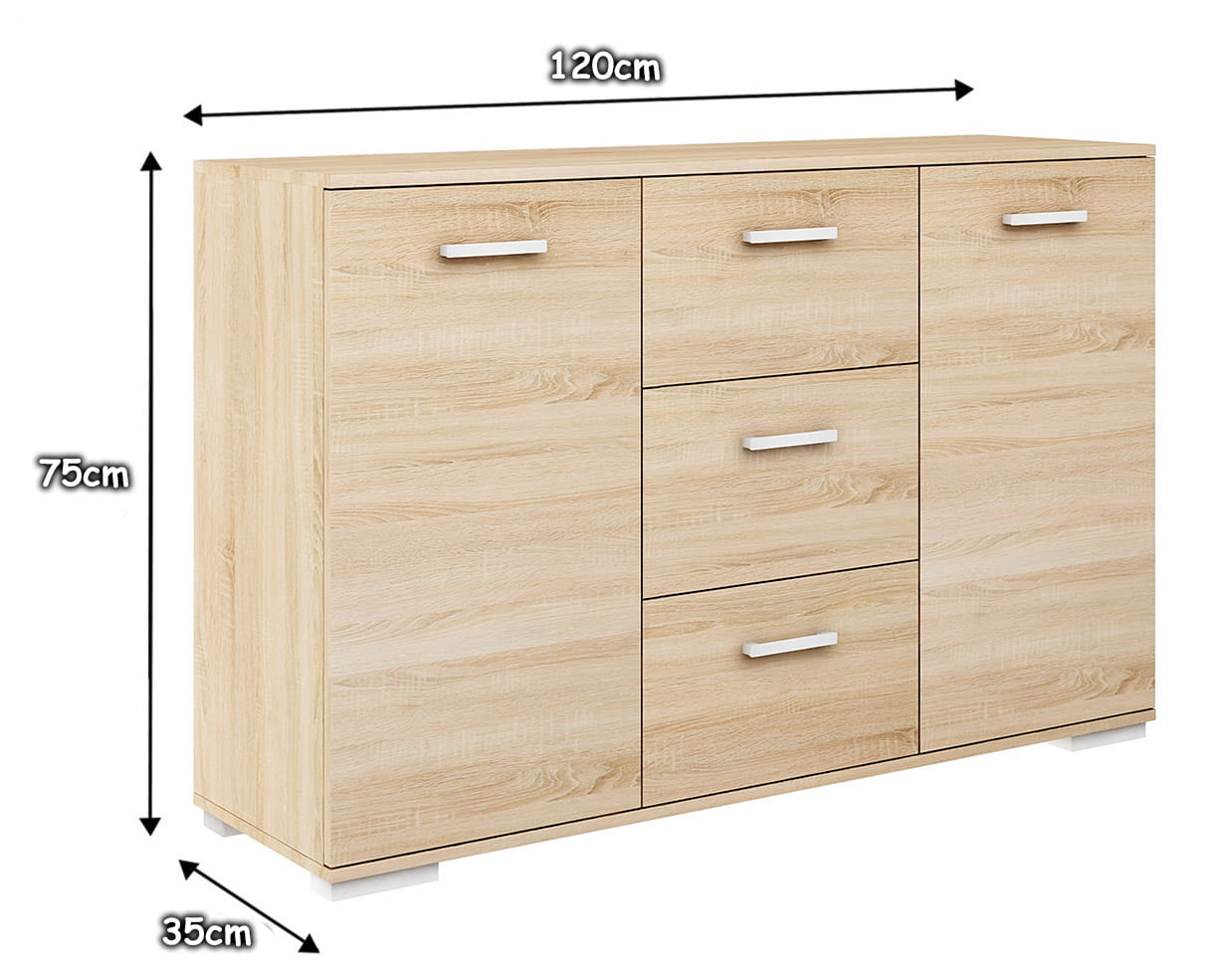 Komoda z szufladami i szafkami ABS-120 K3 dąb sonoma