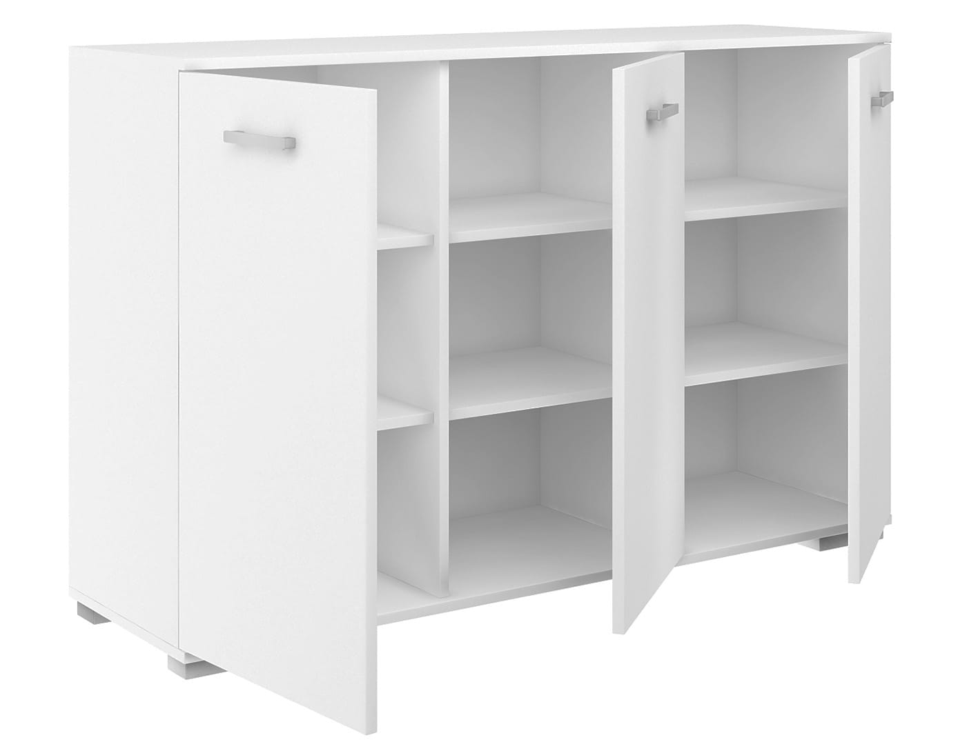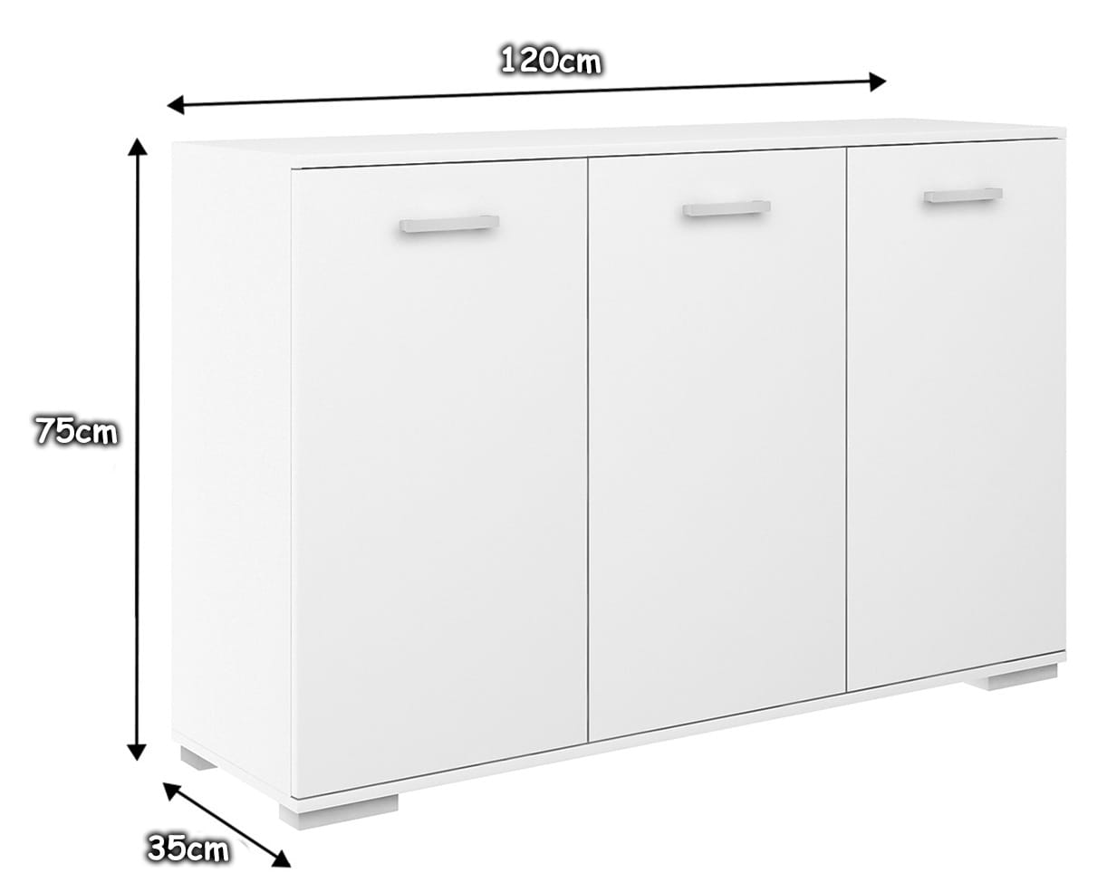 Komoda ABS-120 K1 o szerokości 120 cm w klasycznym stylu, jest uniwersalnym meblem doskonale pasującym do wielu pomieszczeń i wnętrz. Komoda będzie się pięknie prezentować w salonie, pokoju dziecka, przedpokoju lub biurze. Trzy szafki dzielone są wewnątrz dwoma pólkami, co pozwala na lepszą organizację przestrzeni do przechowywania.