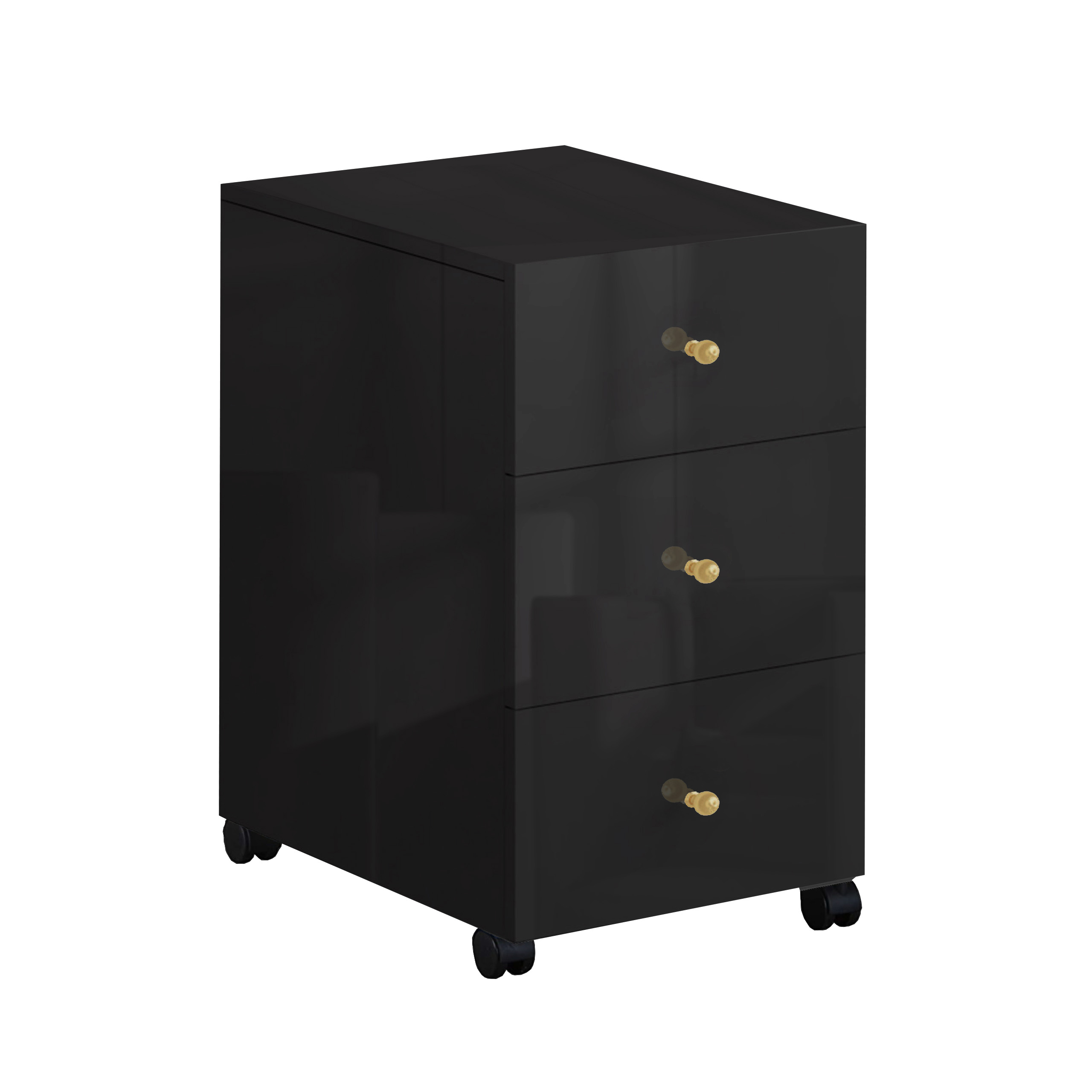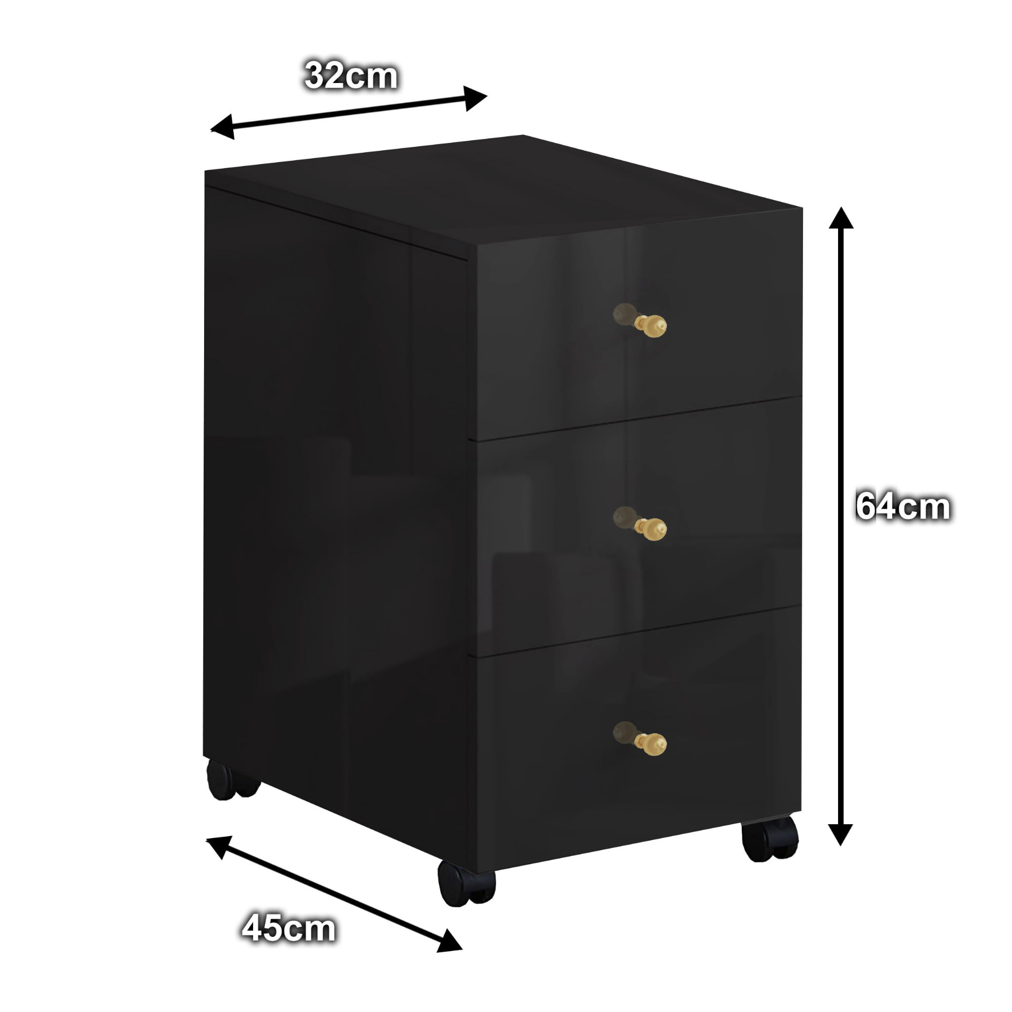 Kontenerek kosmetyczny na kółkach Klara 3S czarny połysk/złoty