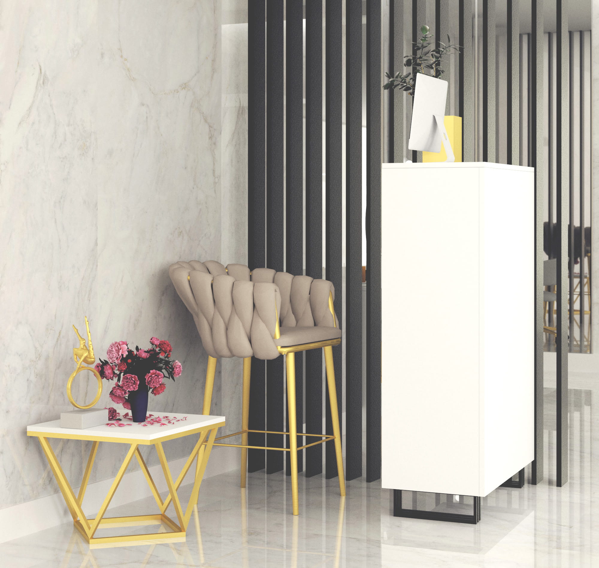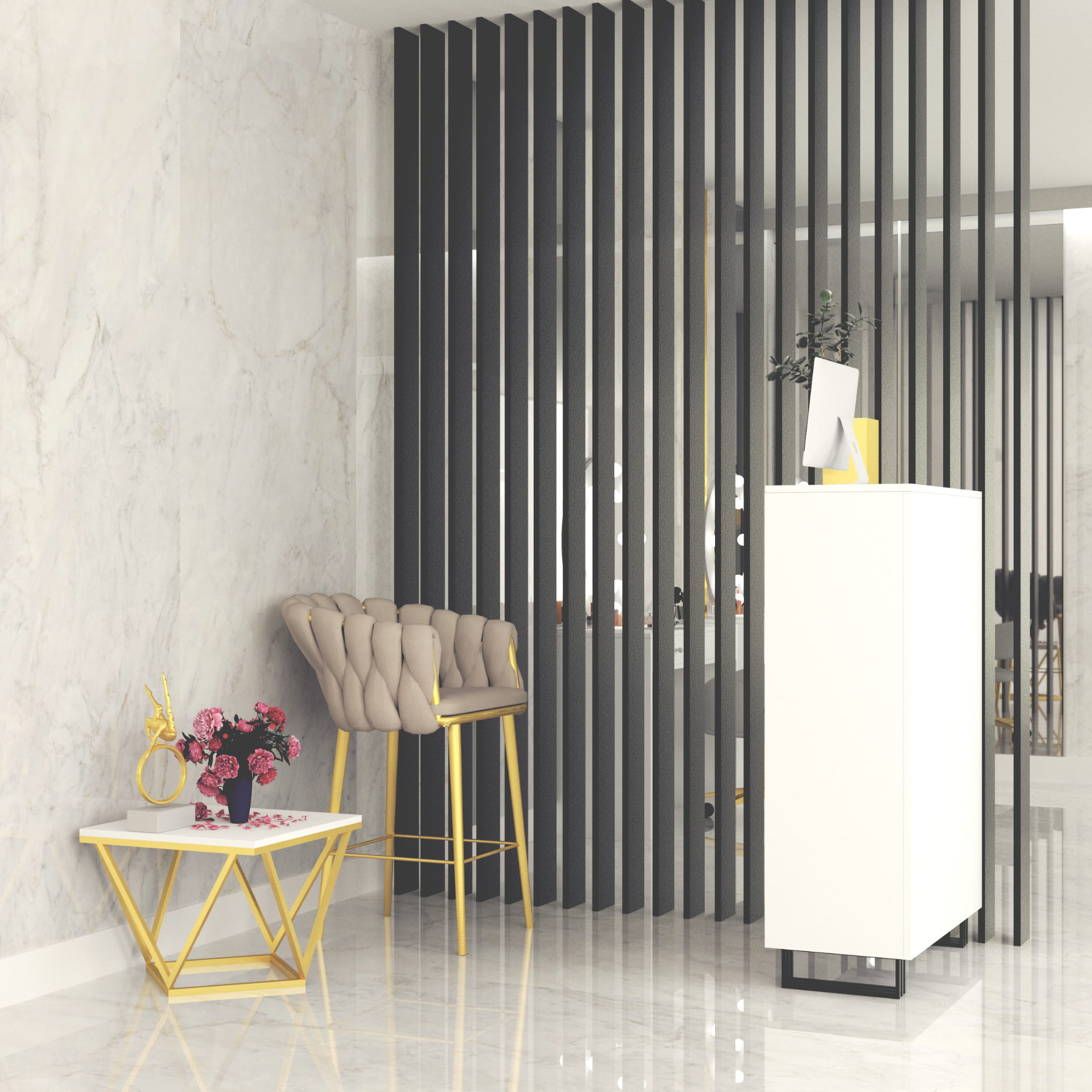 Lada recepcyjna Klara 1 do salonu urody. Wykonana jest z płyty meblowej w kolorze biały mat. Metalowe, malowane proszkowo nogi w kolorze czarnym pięknie podkreślają kolor mebla. Recepcja jest w pełni zabudowana od strony klientów. Ergonomiczne wymiary lady, odpowiednia wysokość i otwarte półki od strony recepcjonistki sprawią, że Twoja codzienna praca będzie niezwykle komfortowa. Duża ilość otwartych półek pozwoli Ci uporządkować wszystkie niezbędne rzeczy do pracy: terminal płatniczy, kasę fiskalną czy kalendarz. Meble z sytemu Klara to najmodniejszy design i gwarancja najwyższej jakości wykonania. Lada recepcyjna Klara 1 doskonale sprawdzi się w salonie kosmetycznym, fryzjerskim, masażu czy studiu tatuażu. Oferujemy szeroki asortyment mebli z systemu Klara - z nami możesz umeblować swój wymarzony salon urody!