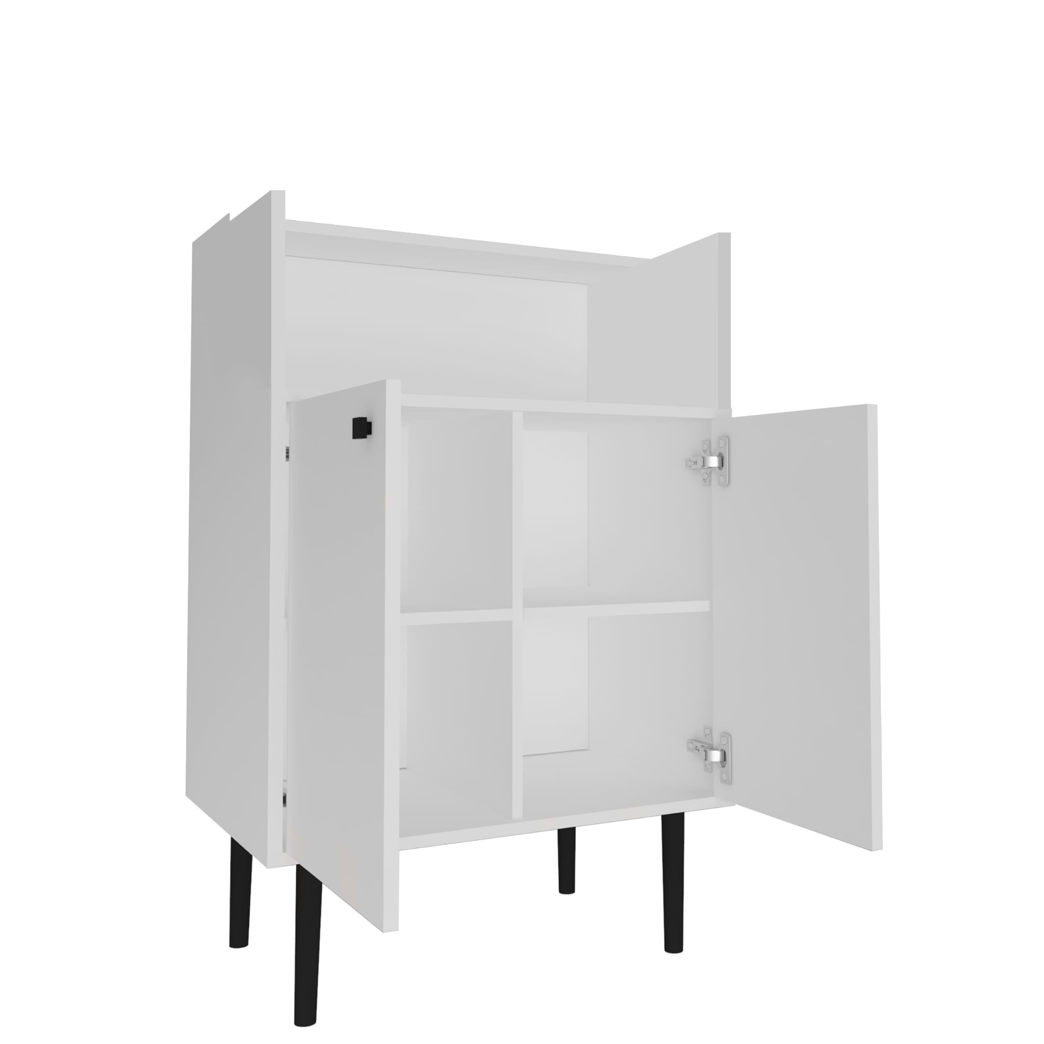 * Wykonane jest z płyty laminowanej odpornej na zarysowania w kolorze biały mat o grubości 18 mm oklejonej PCV o grubości 0,6 mm