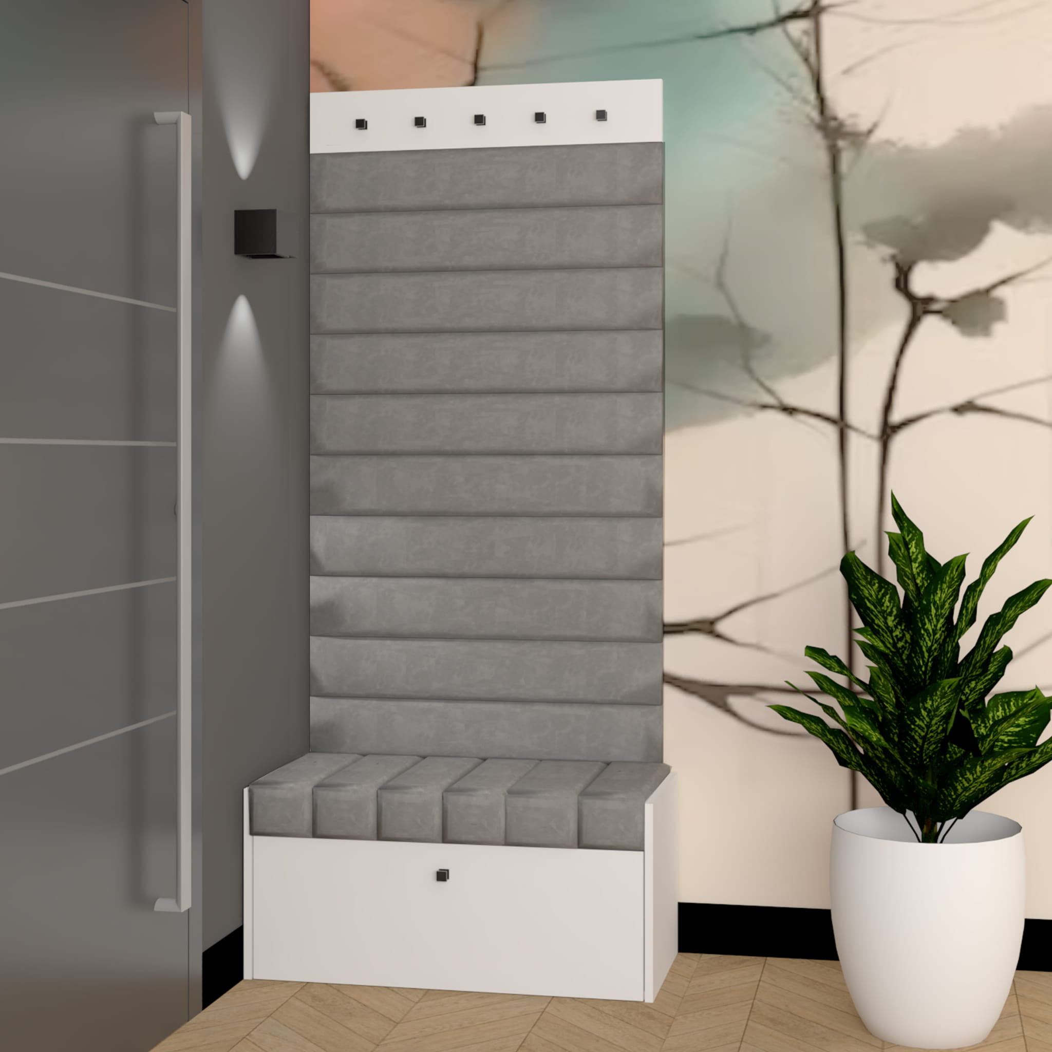 Panel ścienny tapicerowany Diana 14x90cm w kolorze beżowym z najwyższej jakości tkaniny welurowej. Panele można zaaranżować według własnych potrzeb i pomysłów. Zaprojektuj swój przedpokój i ciesz się komfortem i wygodą każdego dnia.