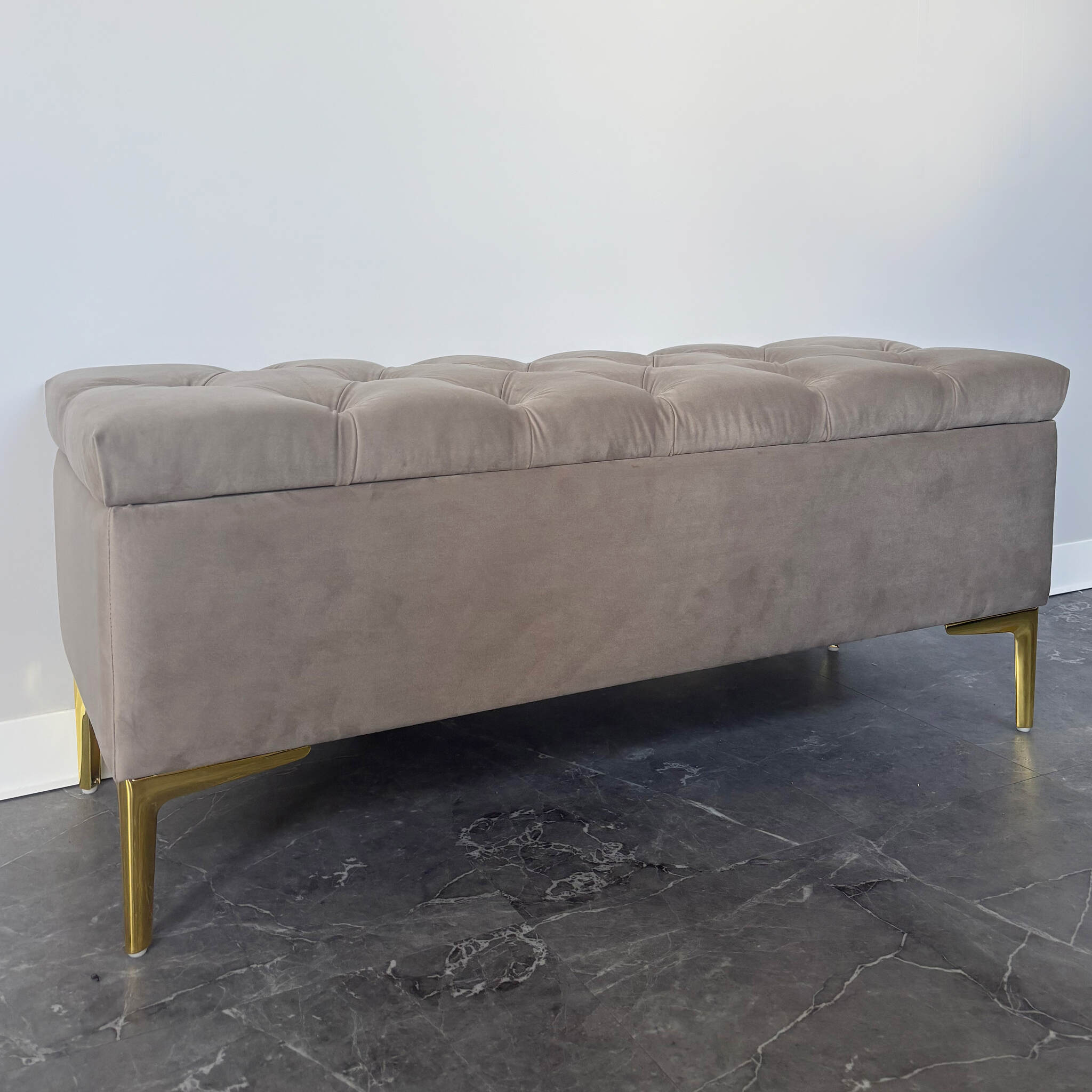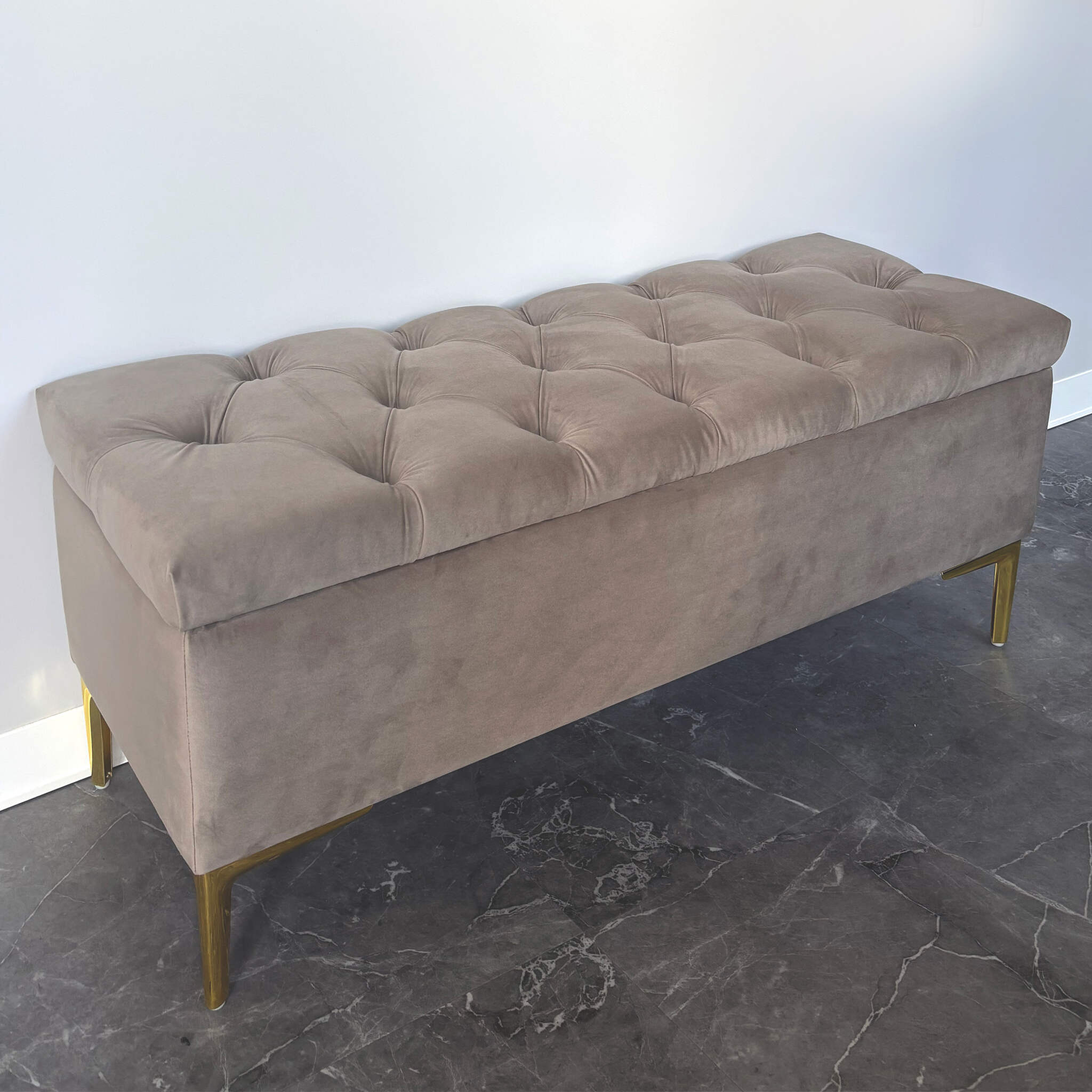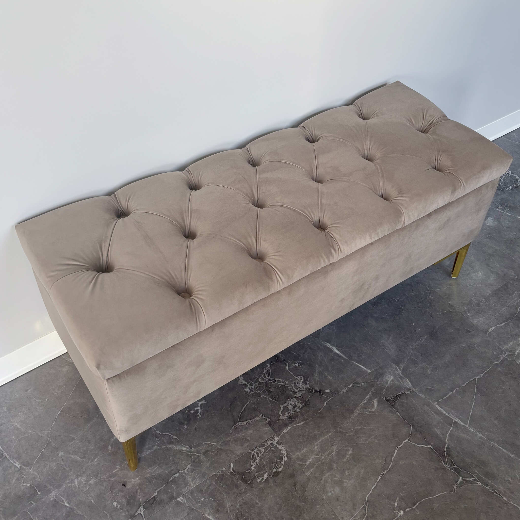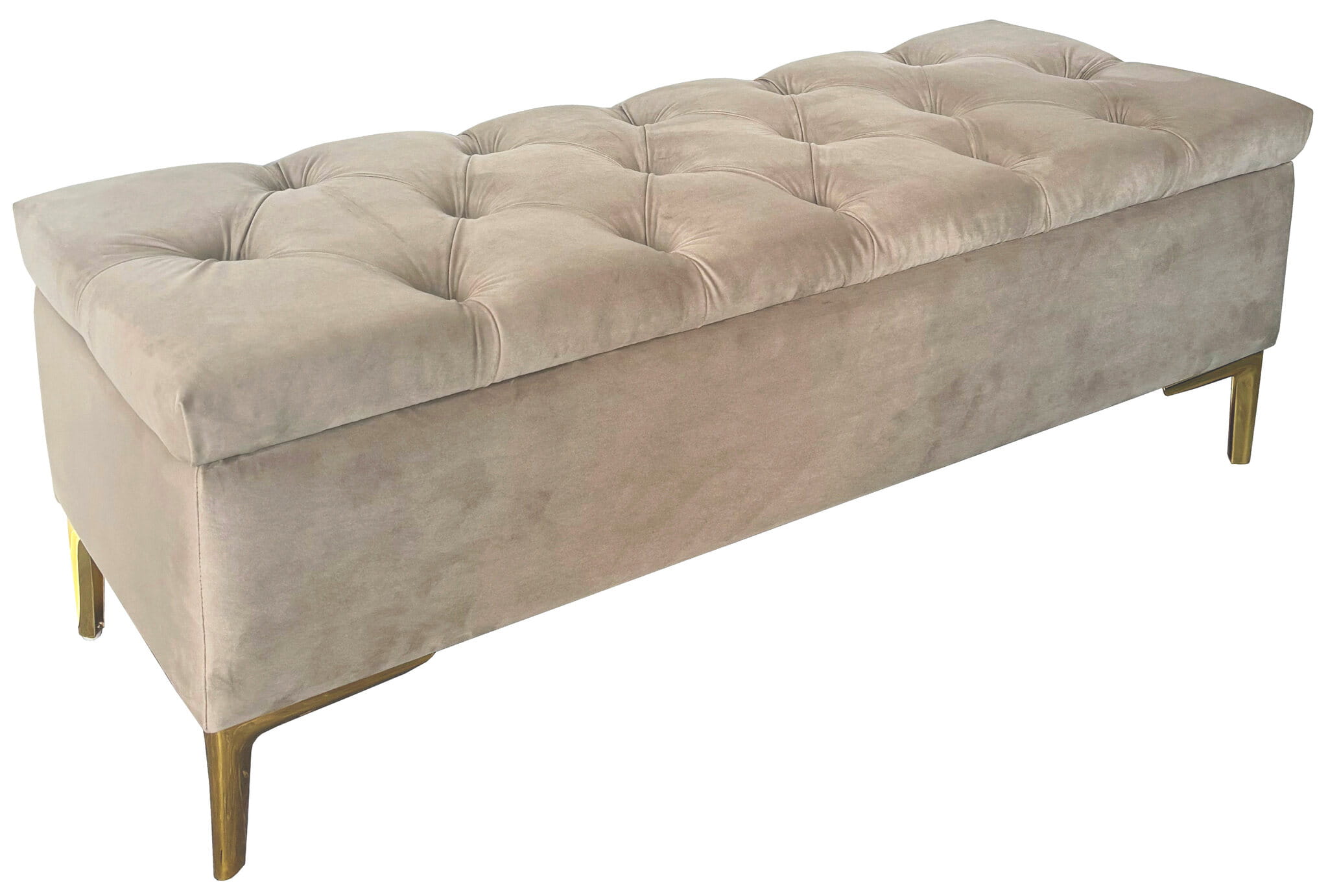 Pufa tapicerowana pikowana CLASSIC BEŻ ze schowkiem / złote nóżki
