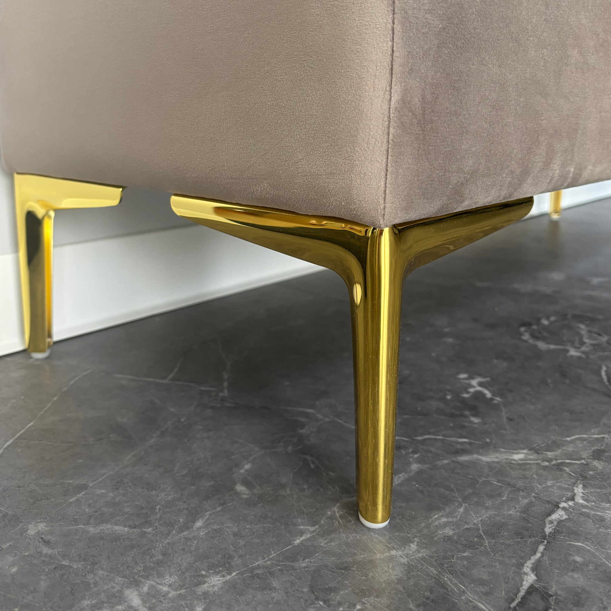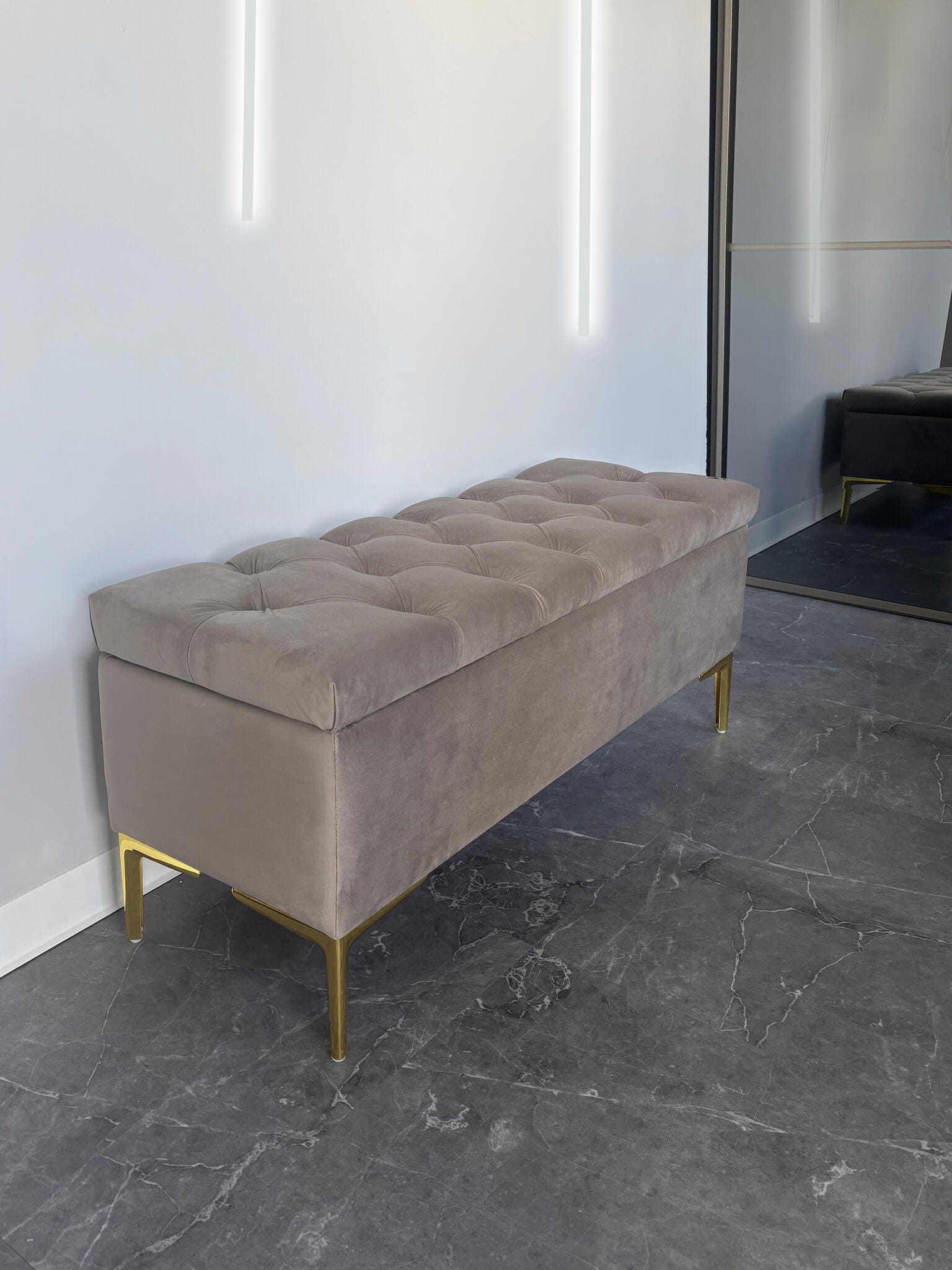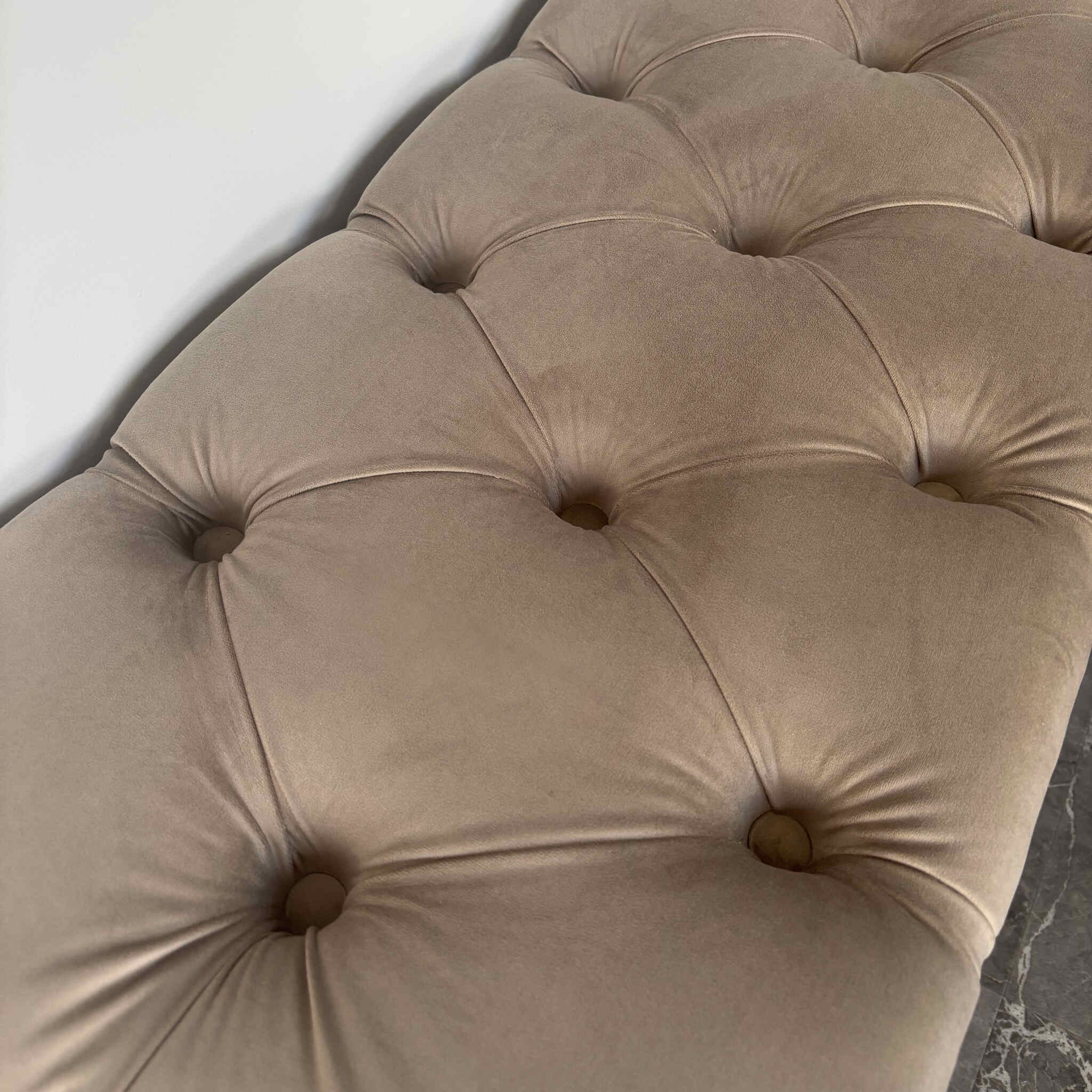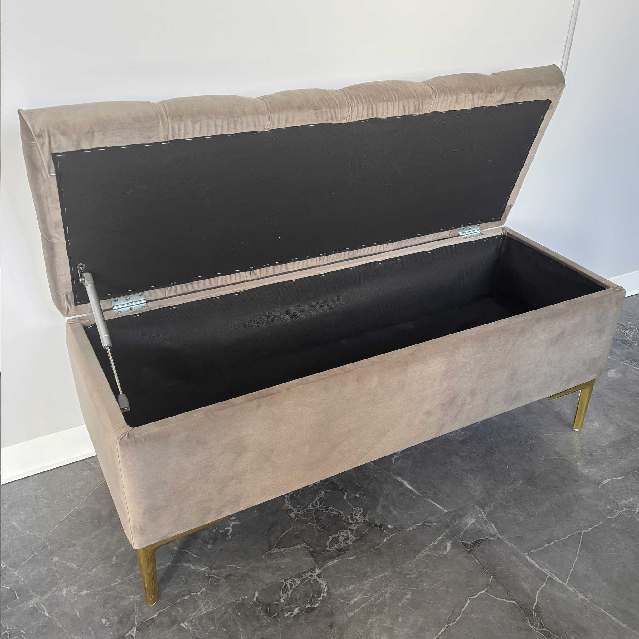 Pufa tapicerowana pikowana CLASSIC BEŻ ze schowkiem / złote nóżki