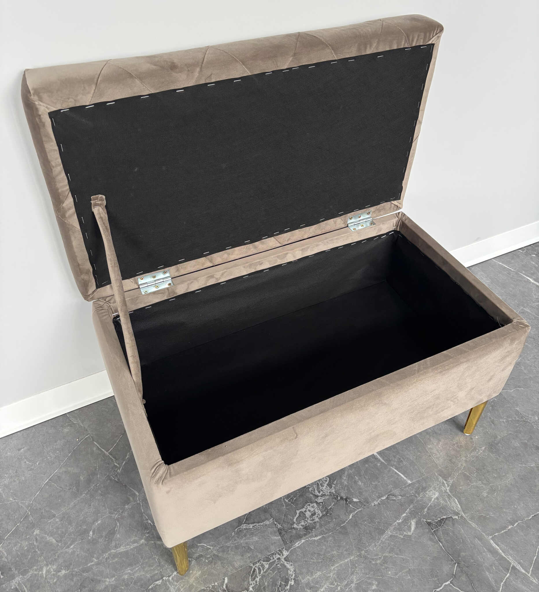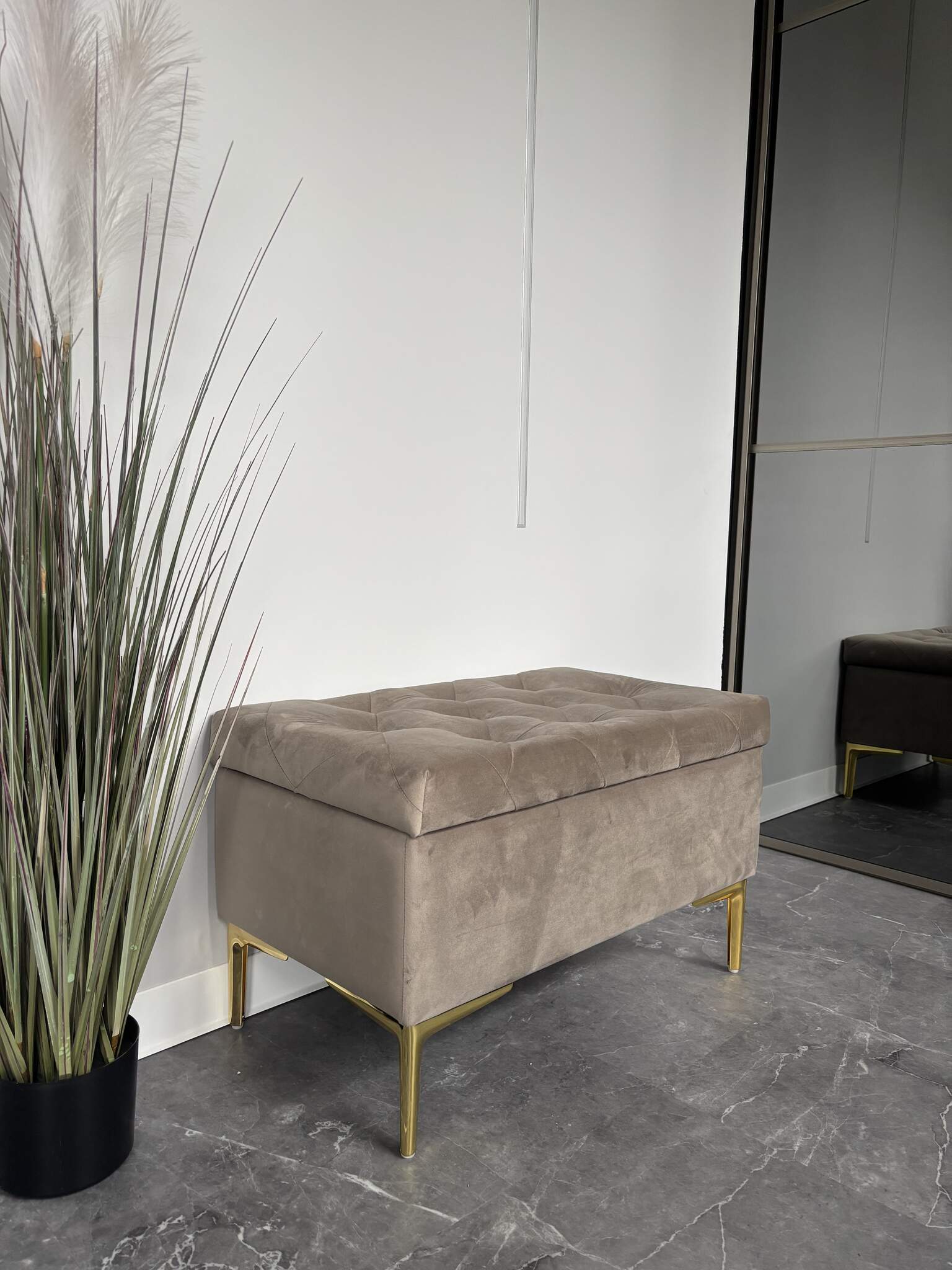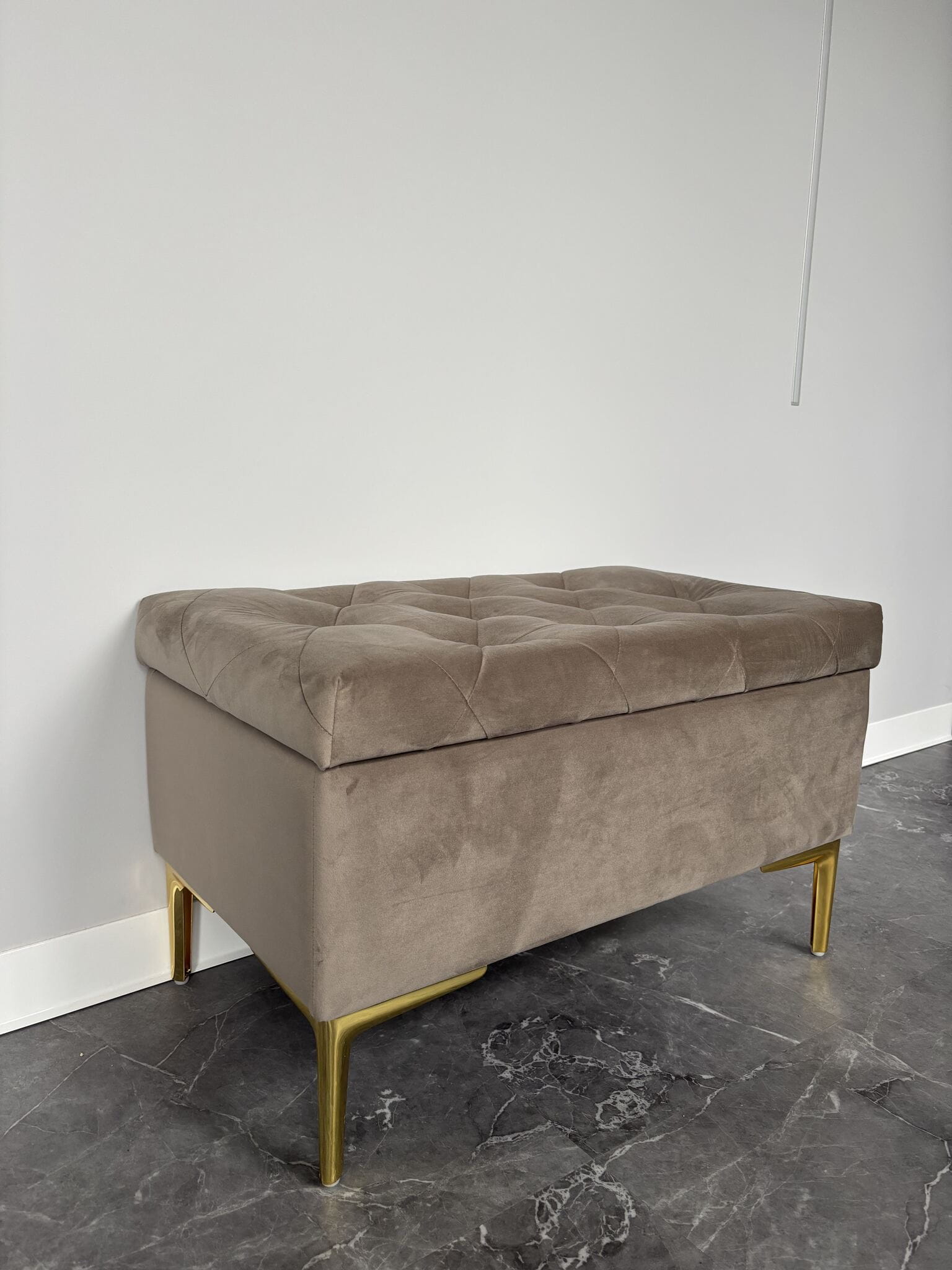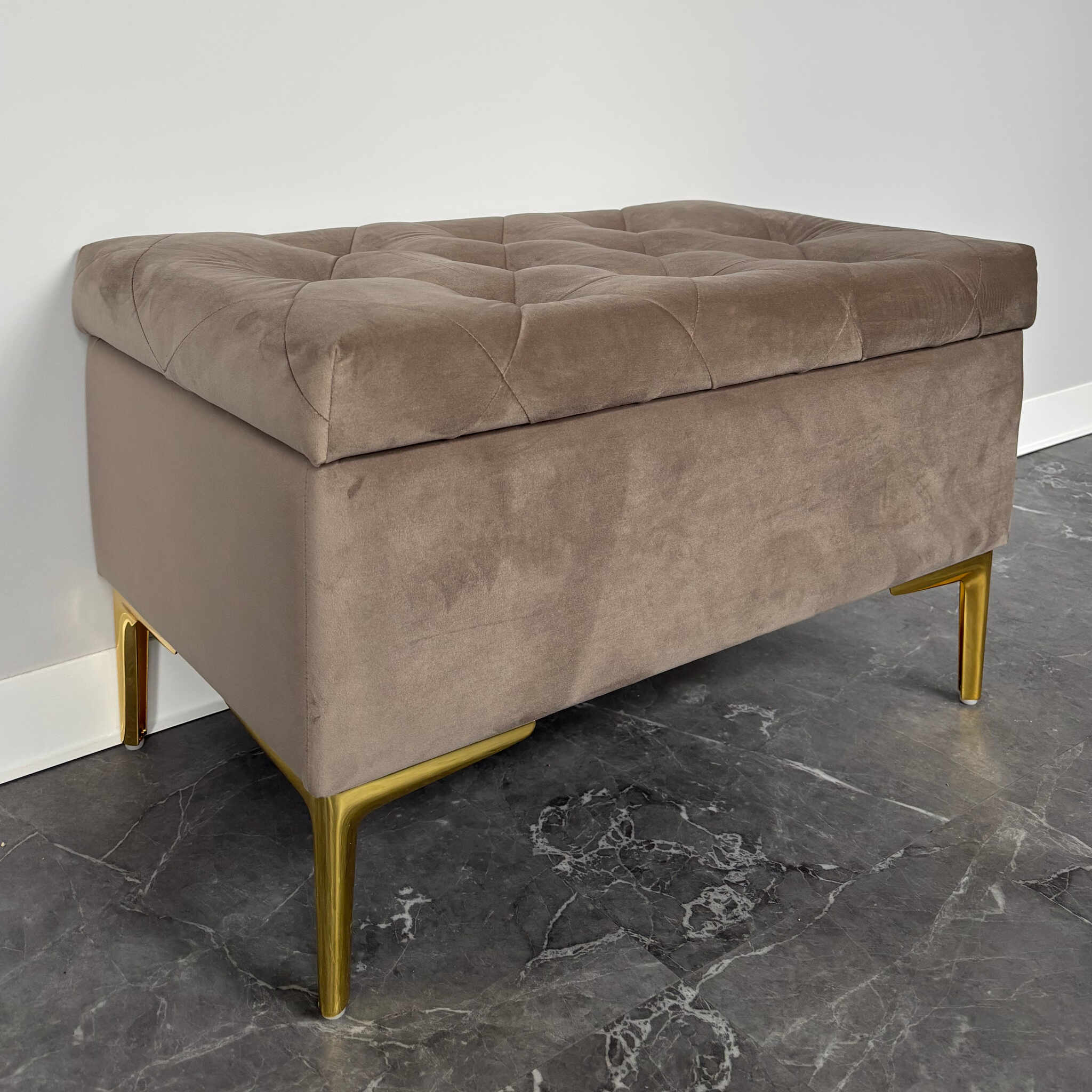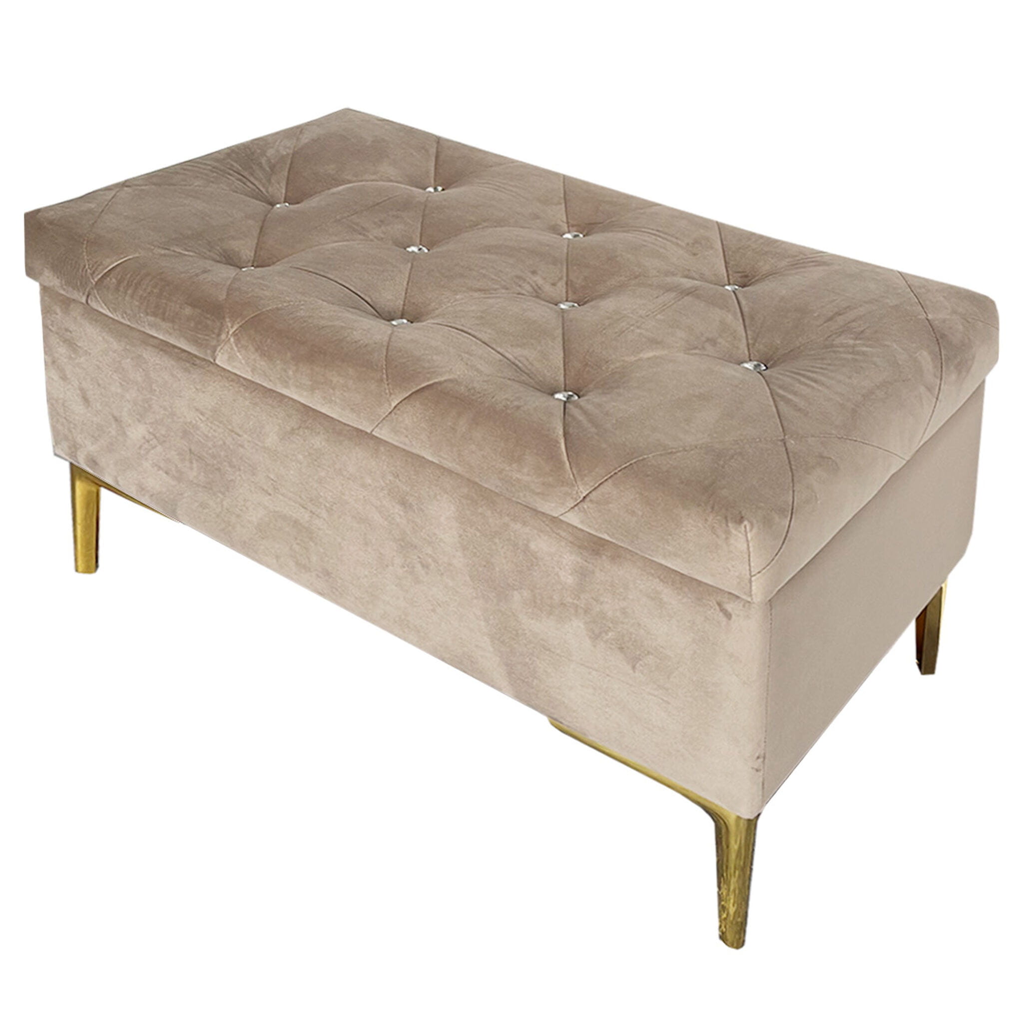 Pufa tapicerowana pikowana GLAMOUR beż ze schowkiem / złote nóżki