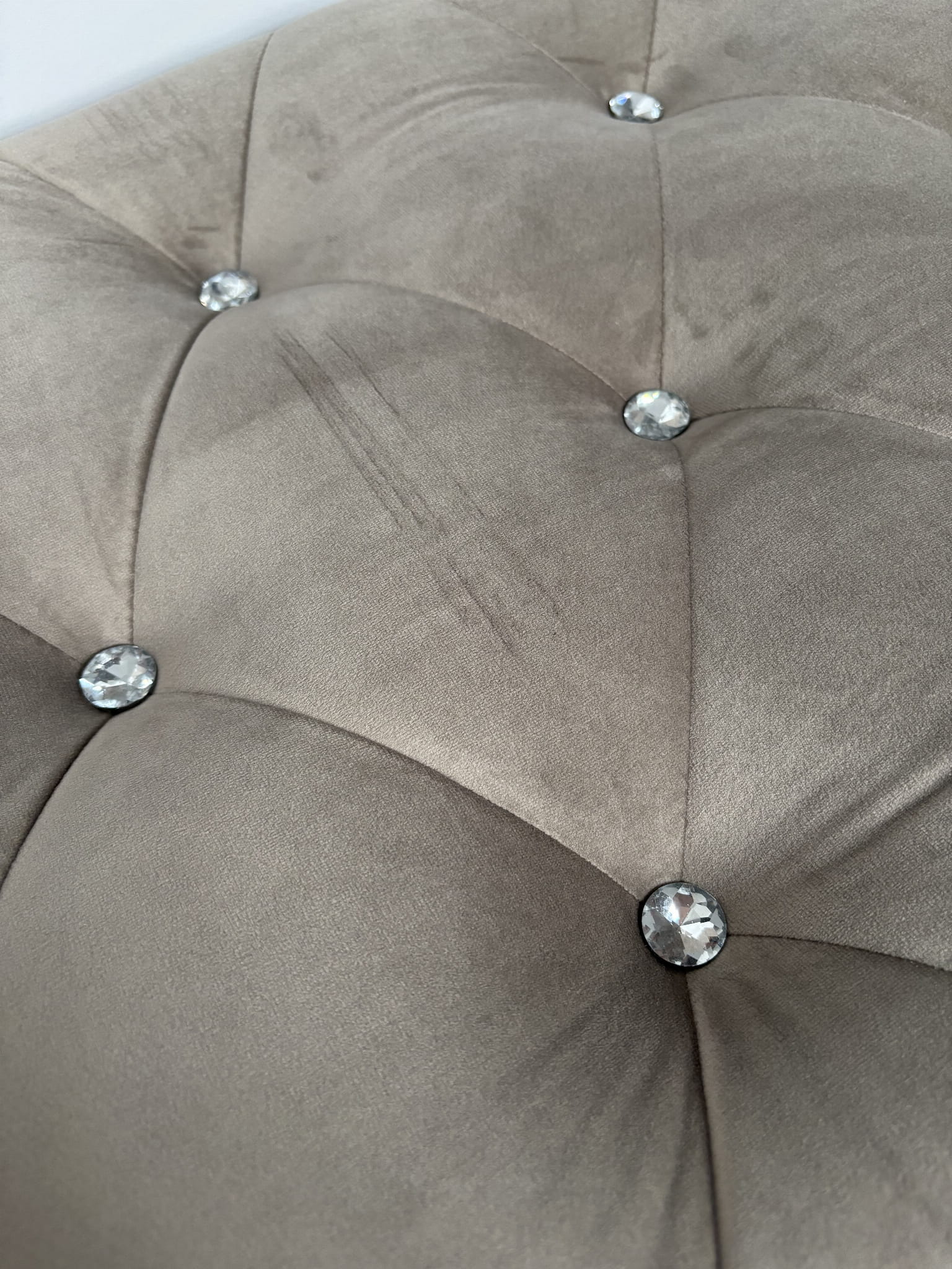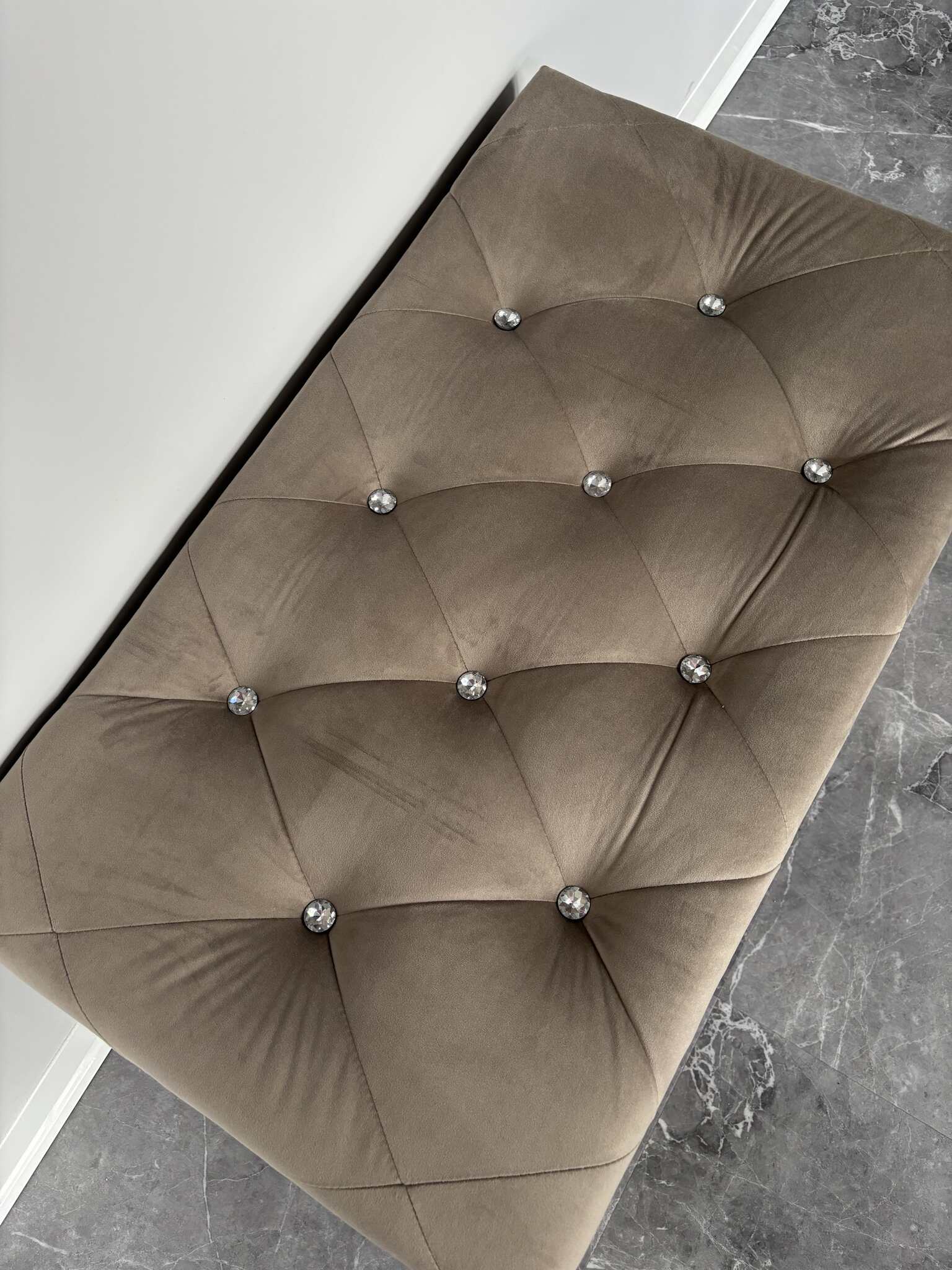 Pufa Glamour to doskonała propozycja dla wszystkich miłośników elegancji i luksusu. Wykonana z miękkiej, przyjemnej w dotyku, wysokiej jakości tkaniny Magic Velvet. Ozdobne pikowanie mieniącymi się kryształkami doda blasku każdemu wnętrzu. Pod wygodnym siedziskiem ukryty jest praktyczny schowek do przechowywania. Pufa wykonana z dbałością o najmniejsze szczegóły doskonale będzie się prezentować w salonie, sypialni czy przedpokoju.