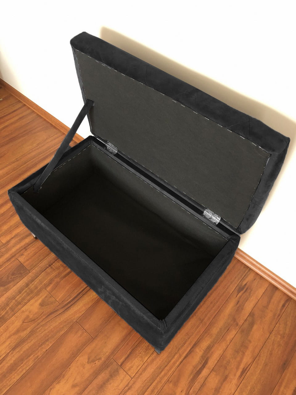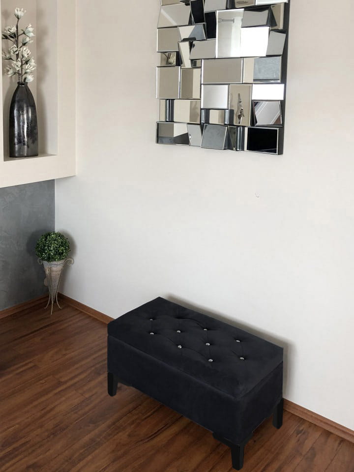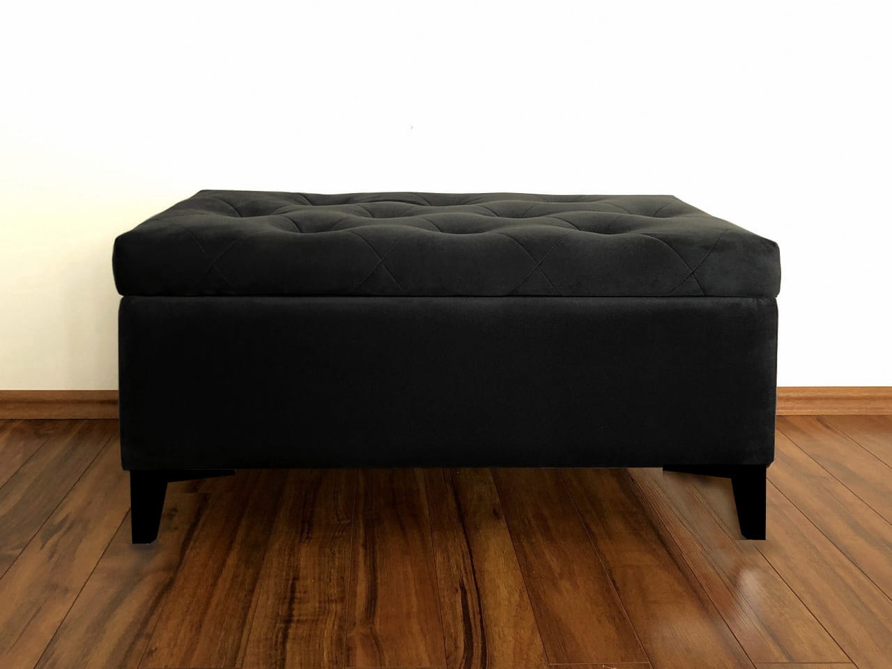 Pufa tapicerowana pikowana GLAMOUR czarna ze schowkiem/nóżki czarny mat