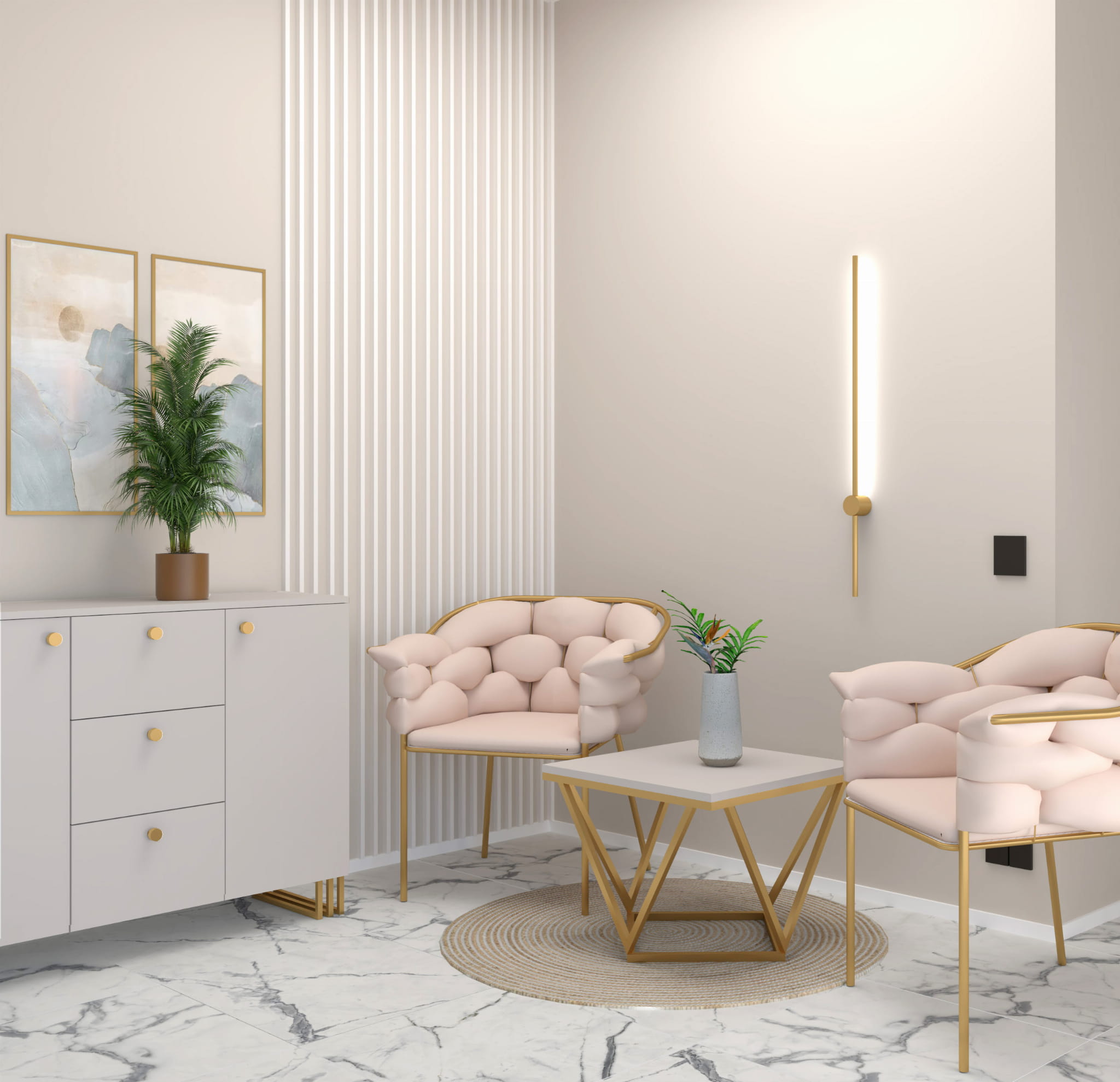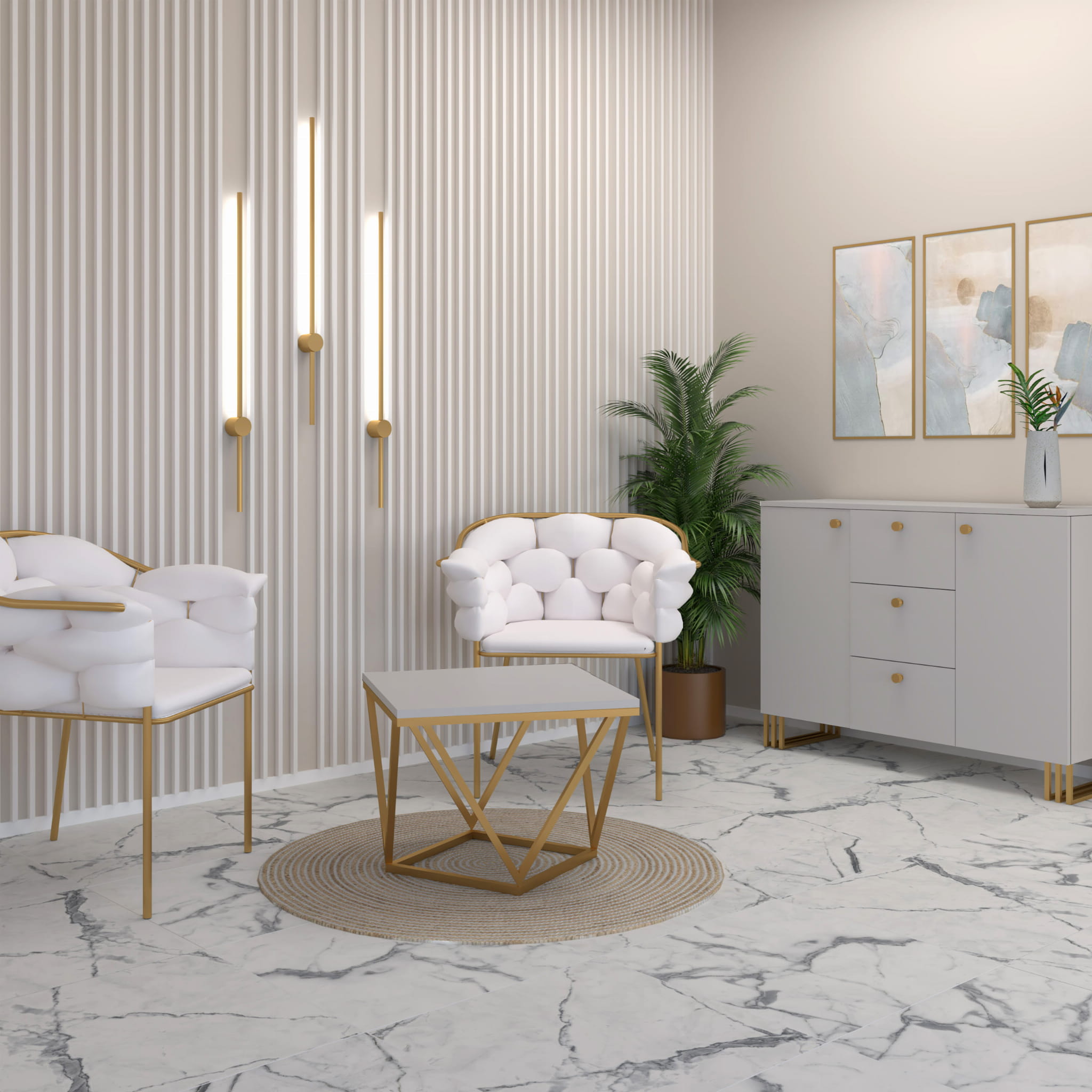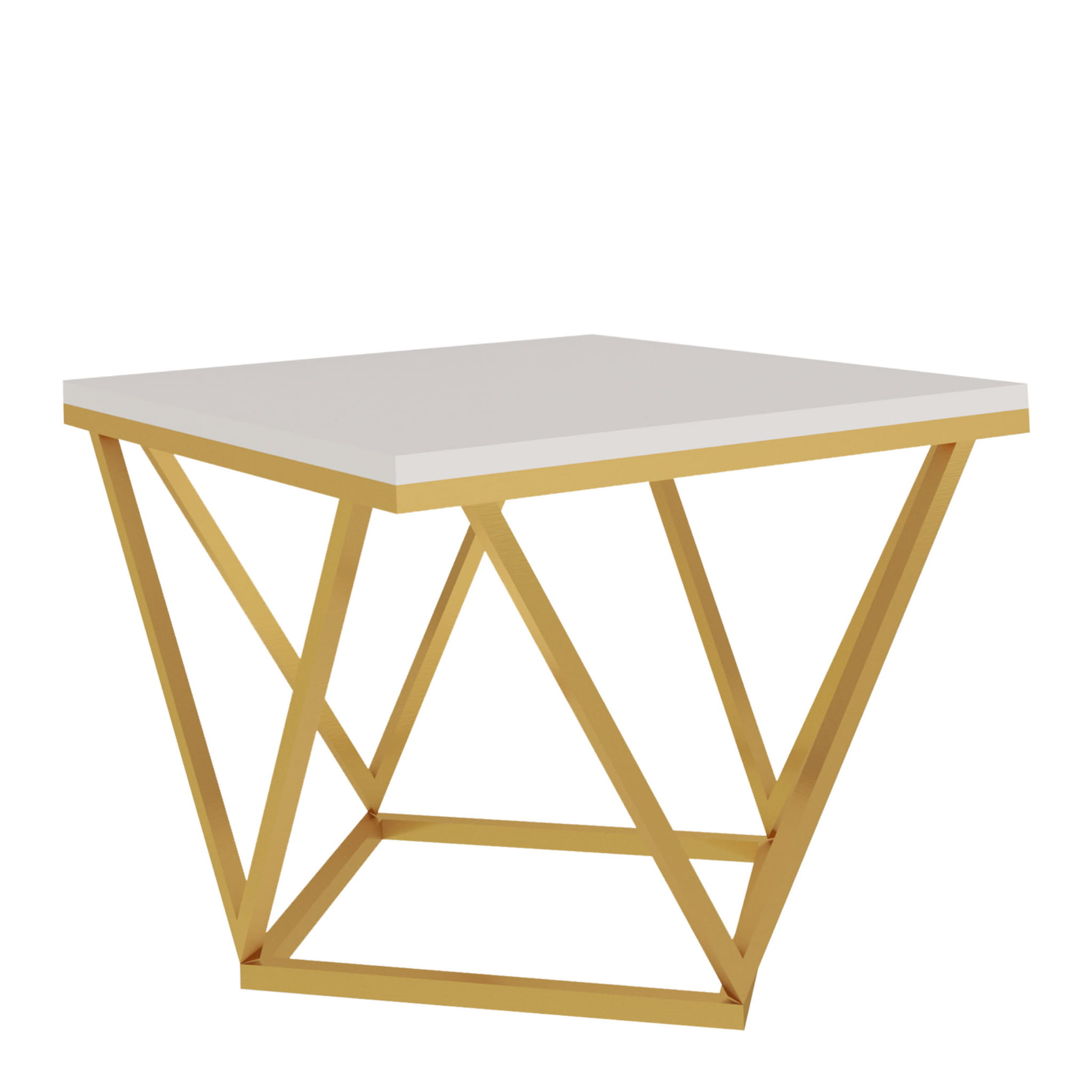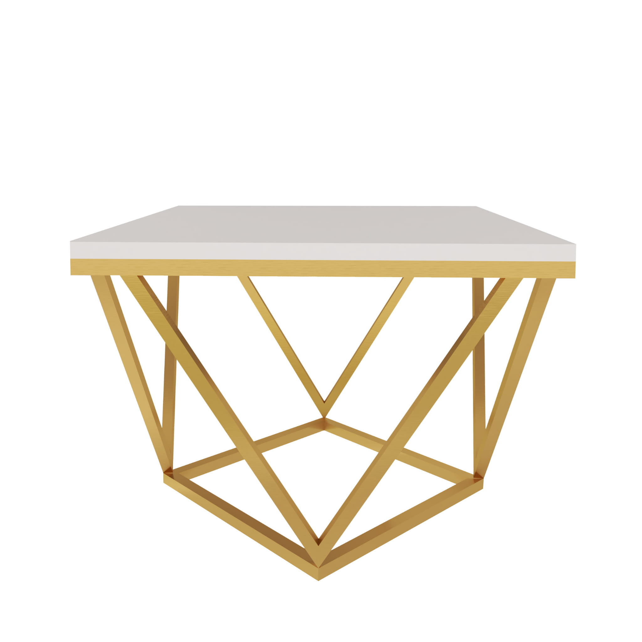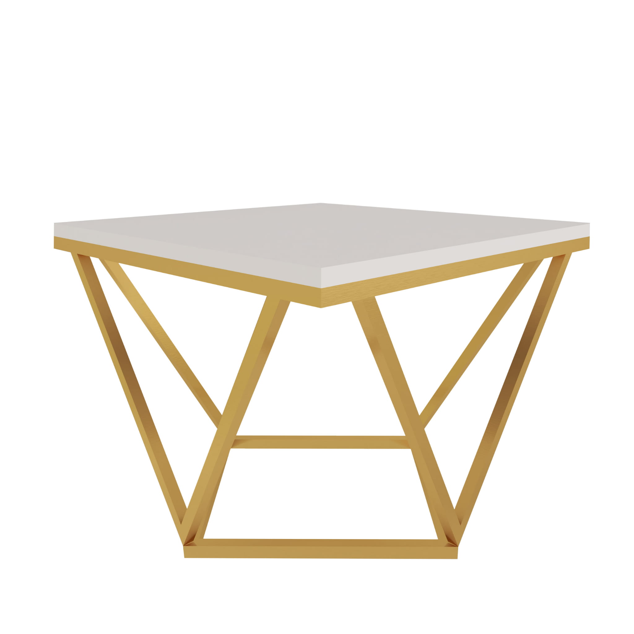 Stolik kawowy Diament to wyjątkowy mebel, który nada Twojemu wnętrzu eleganckiego charakteru. Idealnie skomponujesz go z meblami w stylu glamour. Dopełni on przestrzeń w Twoim salonie i będzie zachwycał swoją prostą i elegancką formą. Stelaż wykonany jest ze stali lakierowanej proszkowo w kolorze - złoty mat, natomiast blat z płyty laminowanej w kolorze kaszmir (beż) o grubości 18 mm.
