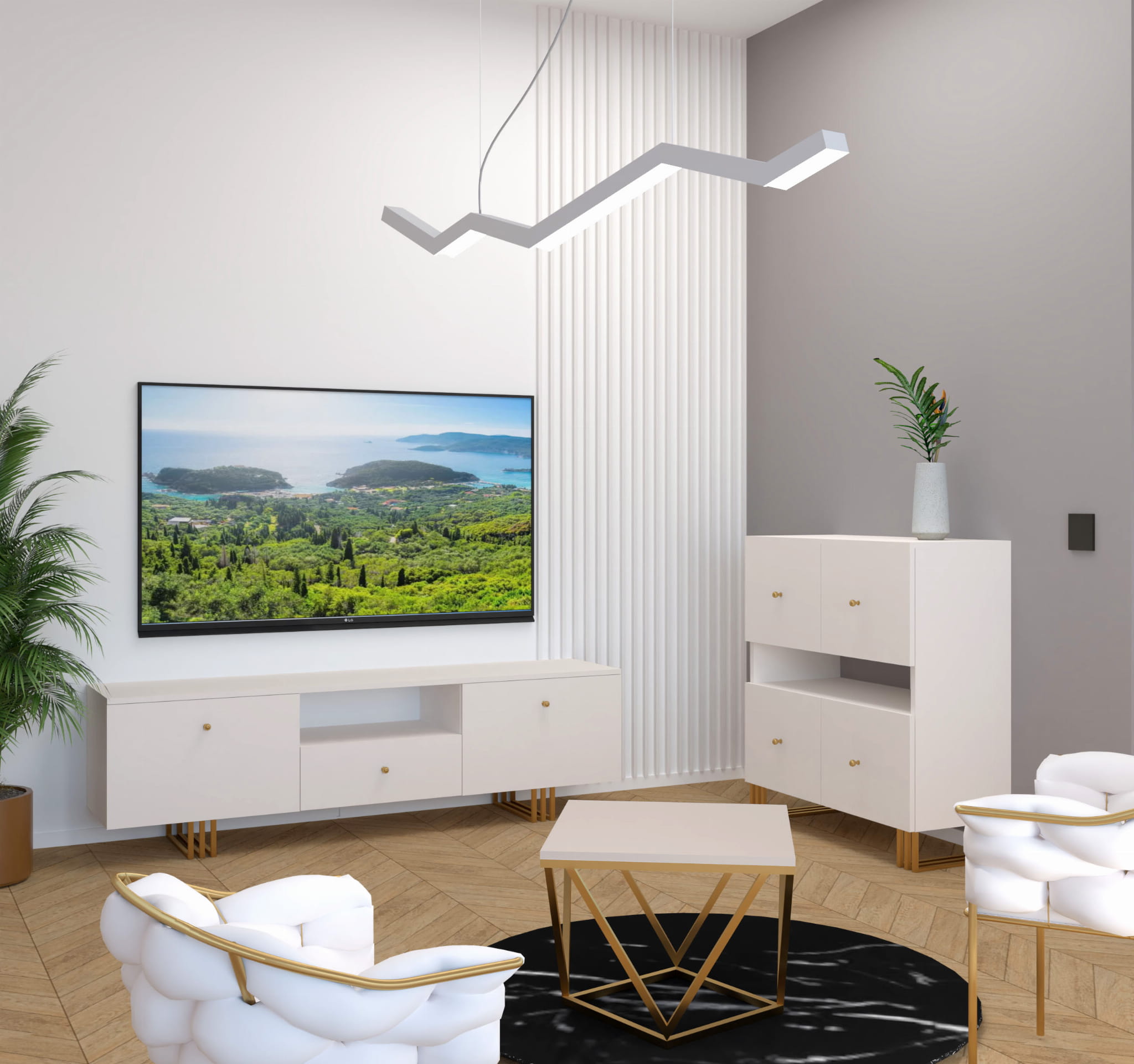 Szafka RTV KLARA 150 cm kaszmir beż/złoty