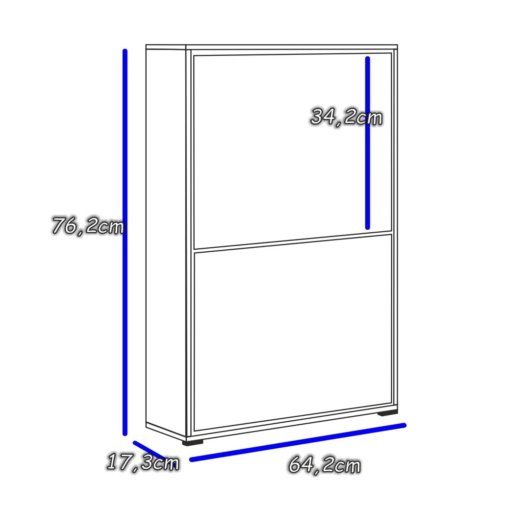 Szafka na buty Fala 12 to niezastąpiony element wyposażenia każdego przedpokoju. Szafka zajmuje niewiele miejsca, gdyż ma zaledwie 18 cm głębokości! Dwie przegrody pozwolą Ci na uporządkowanie obuwia całej rodziny, a uchylny sposób ich otwierania zapewni wygodny dostęp do butów. Moduły szafki Fala 12 można postawić obok siebie , lub jedną na drugiej (bez montażu nóżek). Aranżację przedpokoju możesz uzupełnić szafką na buty z siedziskiem i wieszakiem z tej samej kolekcji. Szafka posiada modne i eleganckie uchwyty i stopki w kolorze złotym szczotkowanym.