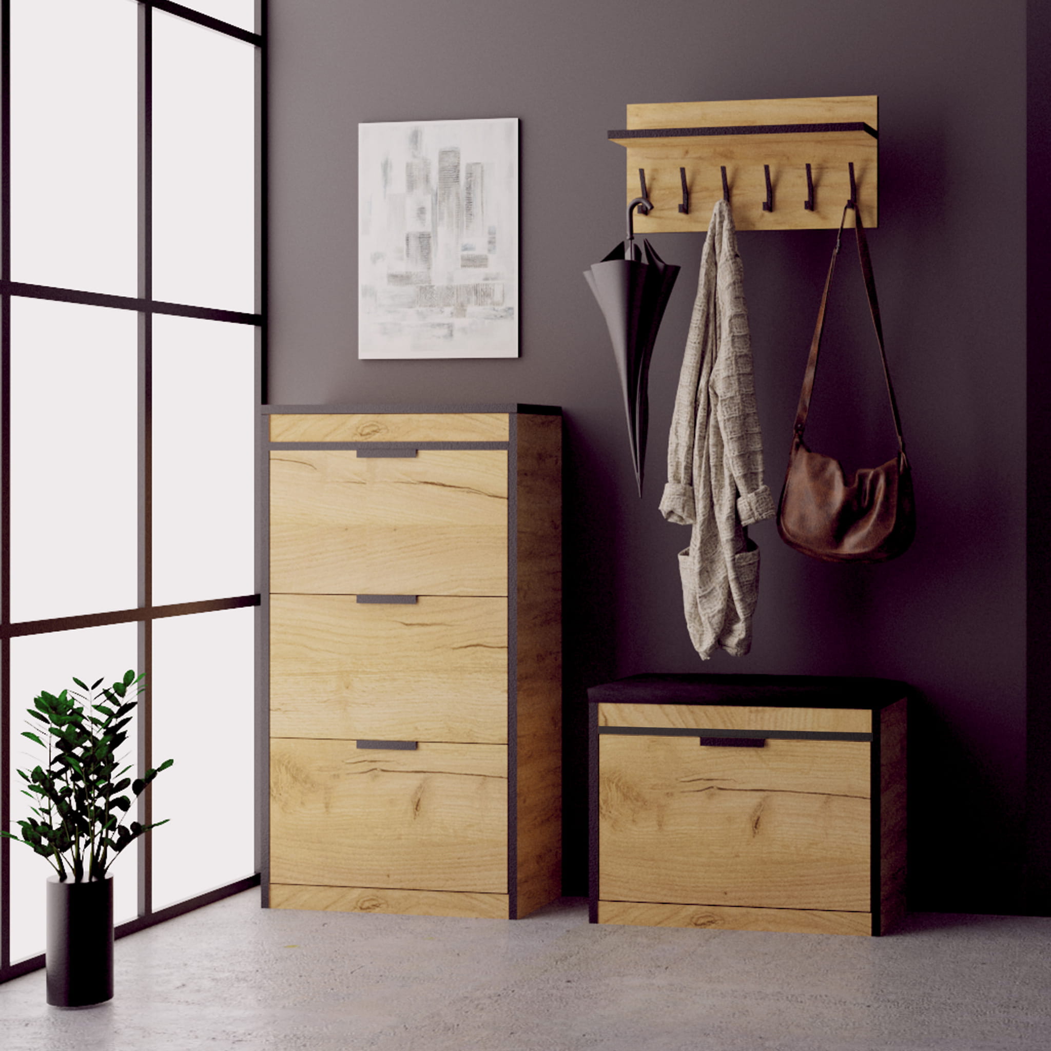 Szafka na buty z siedziskiem ALASKA 11C dąb złoty/czarne