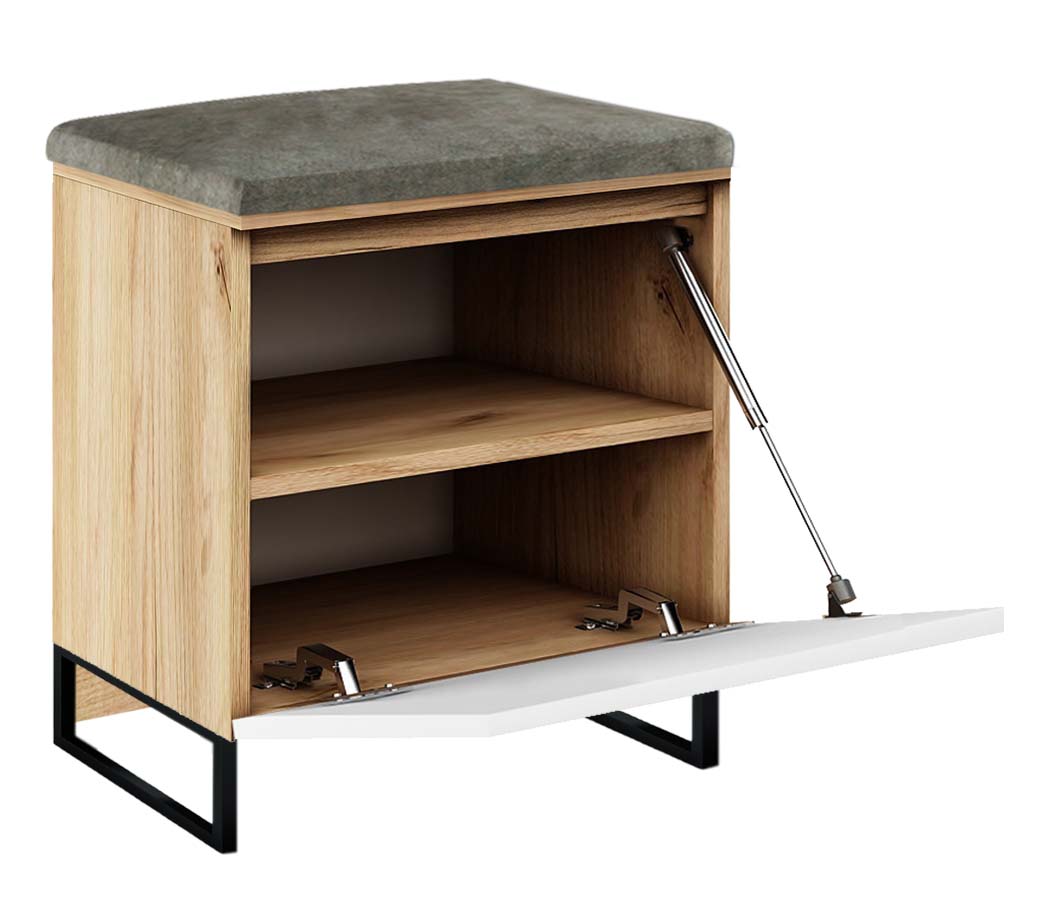 Szafka na buty z siedziskiem MEGAN 1P dąb złoty+biały/szare