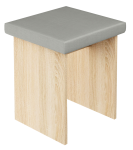 Taboret z niezwykle wygodnym siedziskiem doskonale pasuje do wszystkich toaletek. Siedzisko wykonane jest z gąbki tapicerskiej o grubości 5,5 cm i obszyte wysokiej jakości tkaniną w kolorze szarym. Taboret wykonany jest z tej samej płyty laminowanej co toaletki, będzie więc idealnie się komponował, tworząc piękny zestaw.