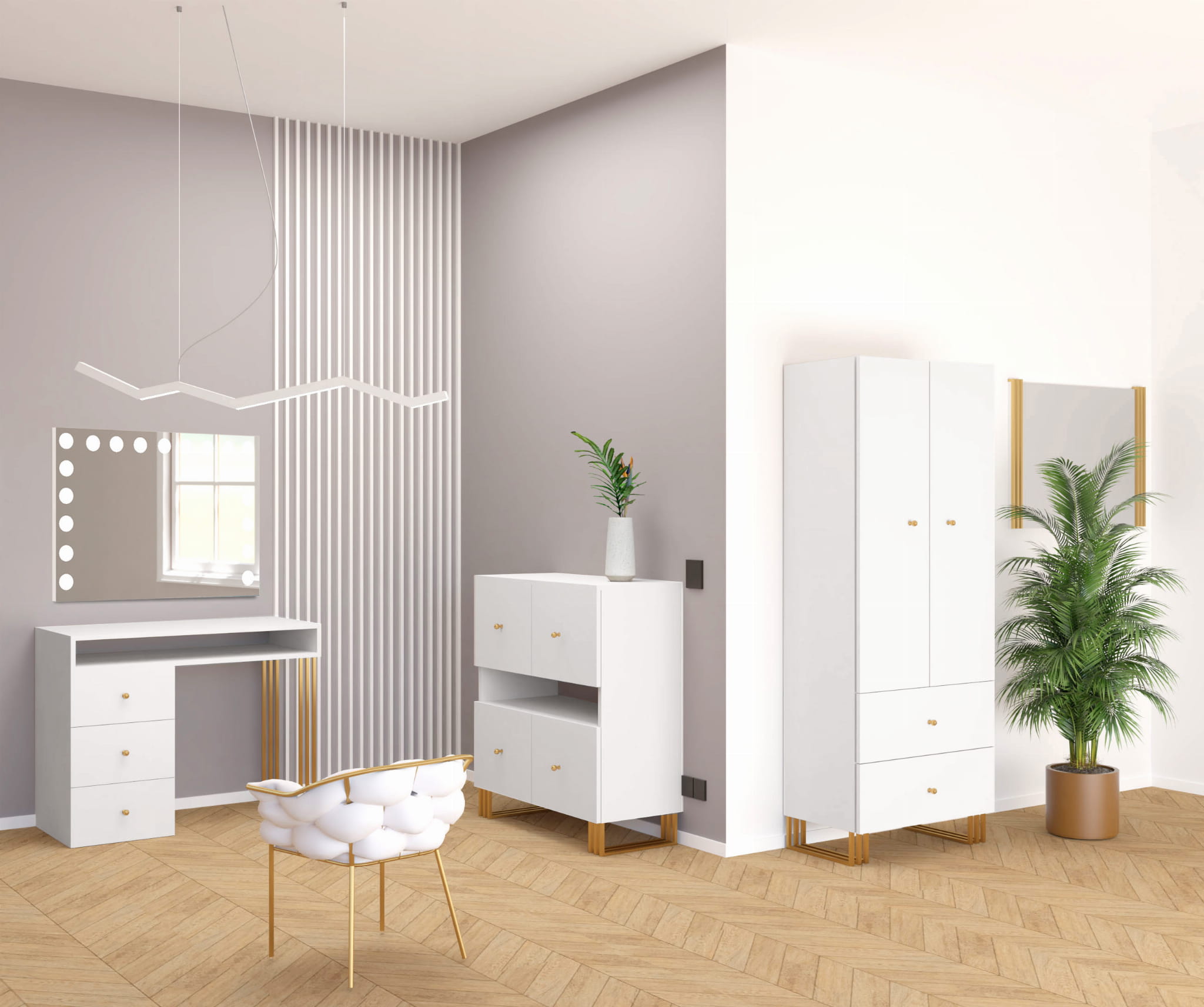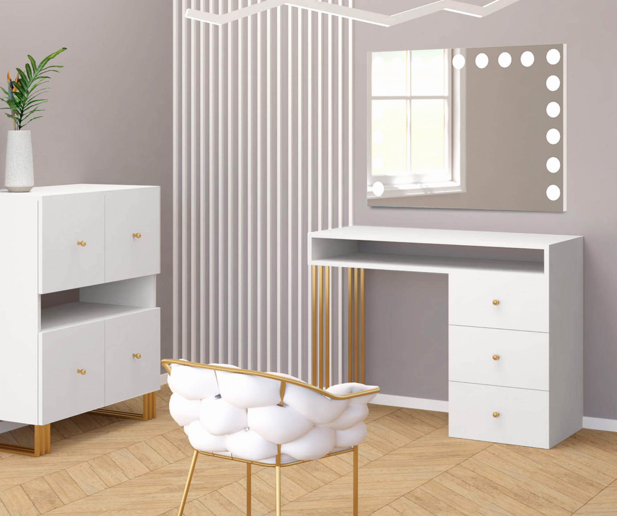 Toaletka KLARA z lustrem VISAGE z oświetleniem LED biały mat/złoty