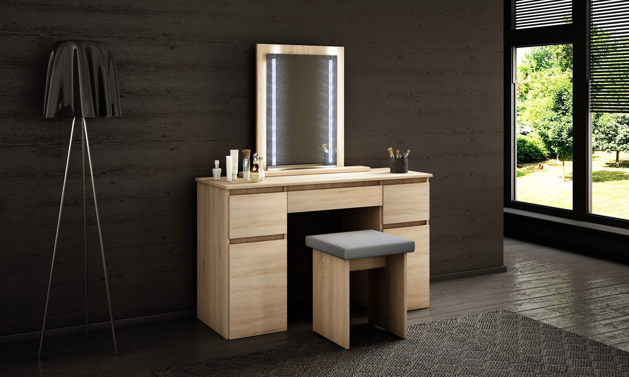 Toaletka MEGAN B1 do makijażu z oświetleniem LED dąb sonoma