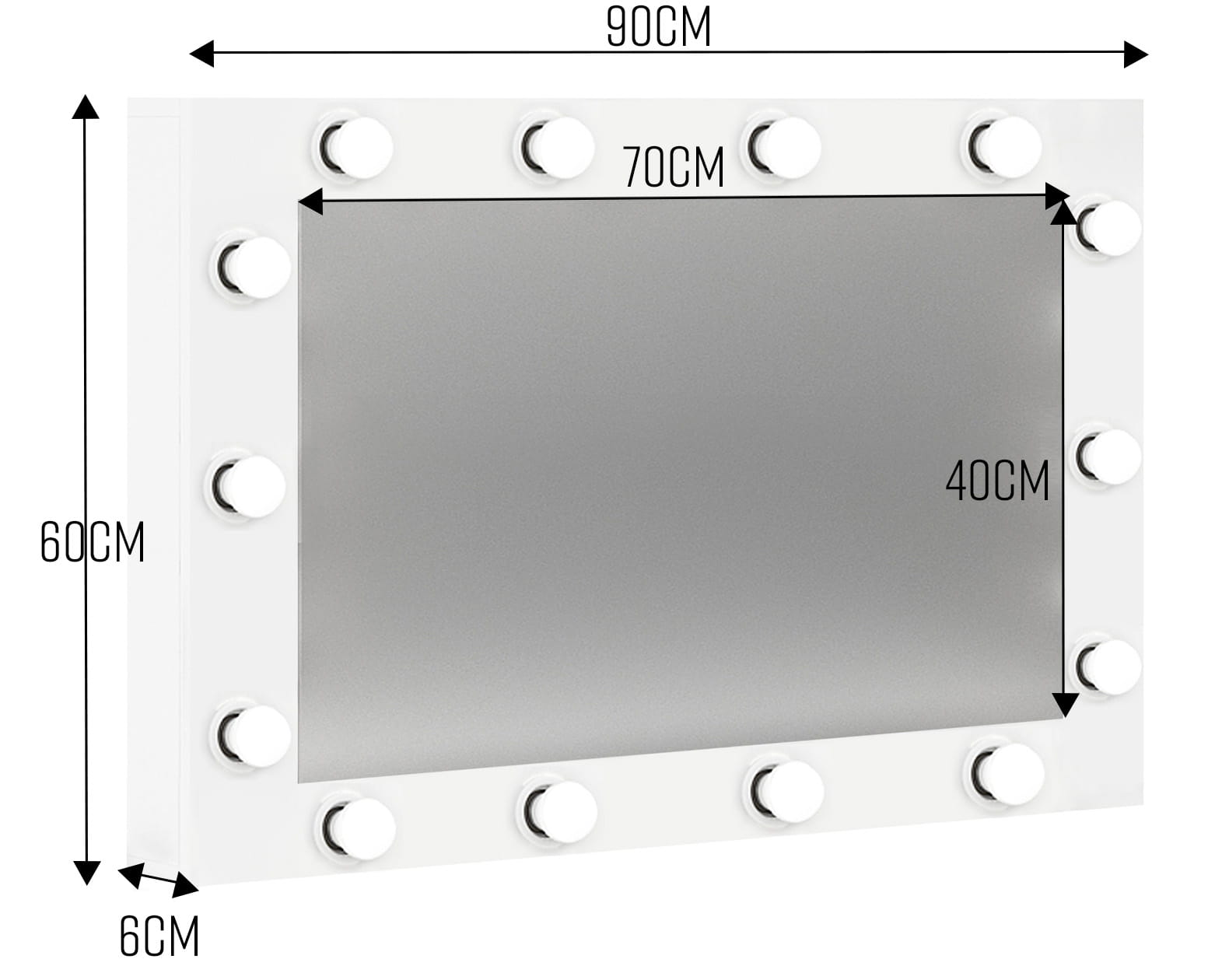 - szerokość tafli lustra: 70cm