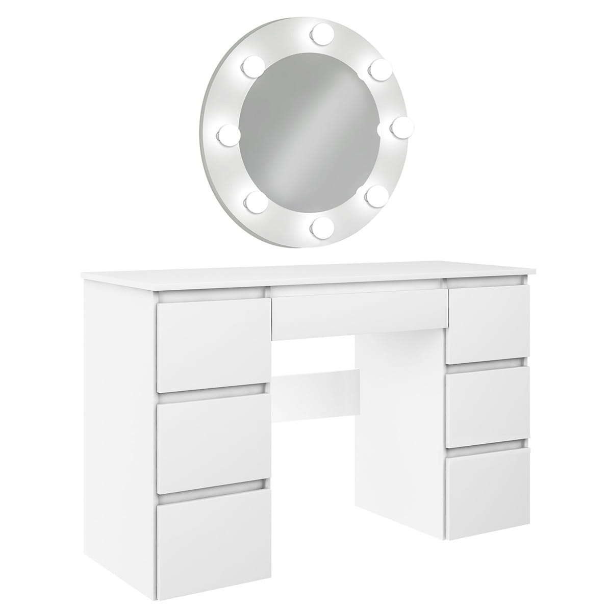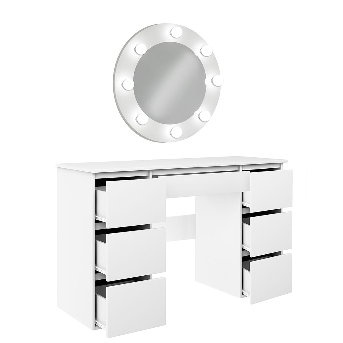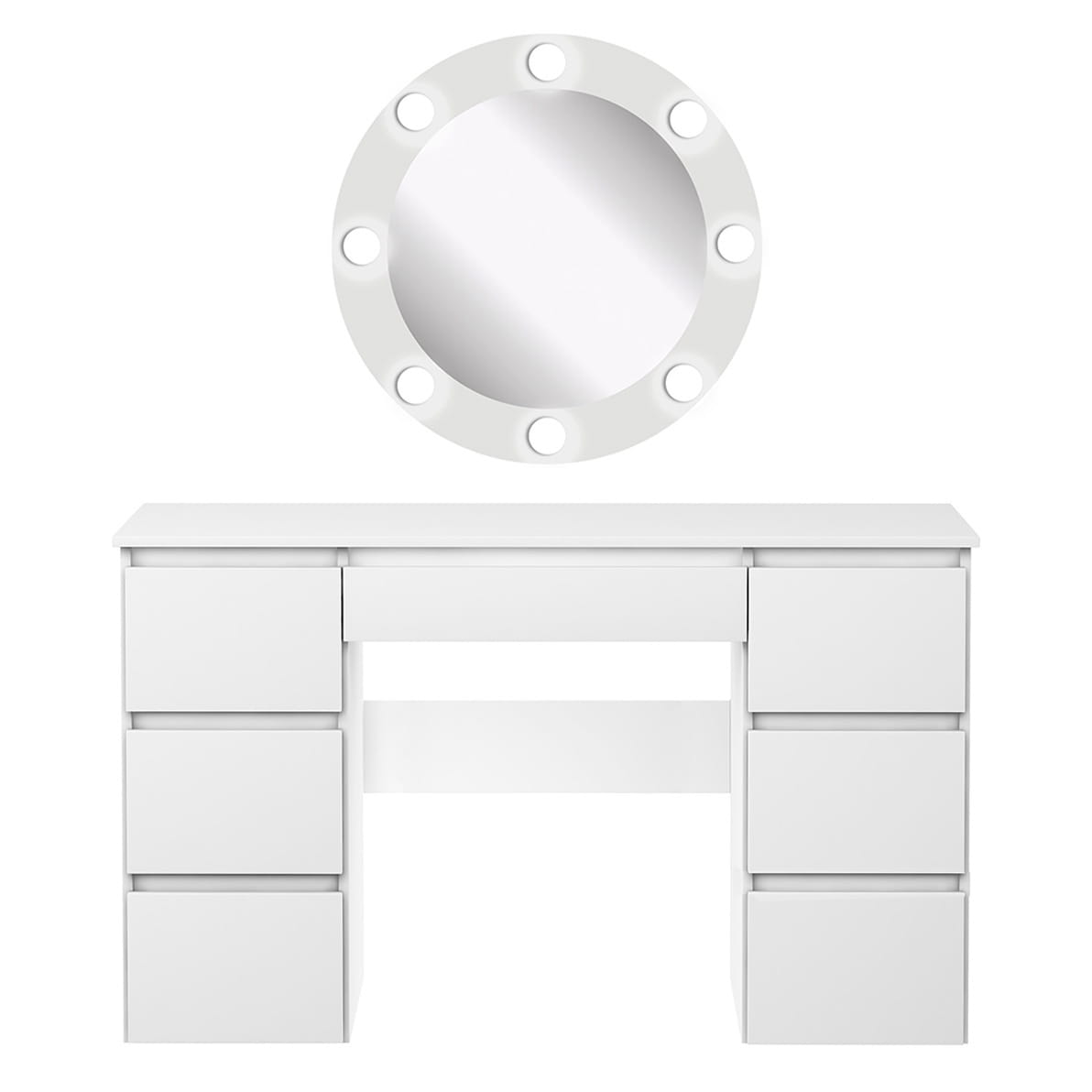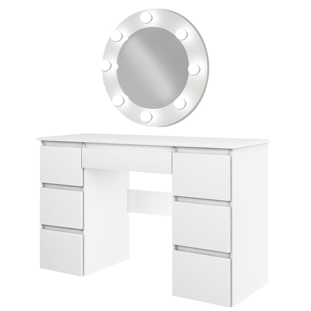 Toaletka MEGAN B3 biały mat z lustrem okrągłym FI65 8 żarówek