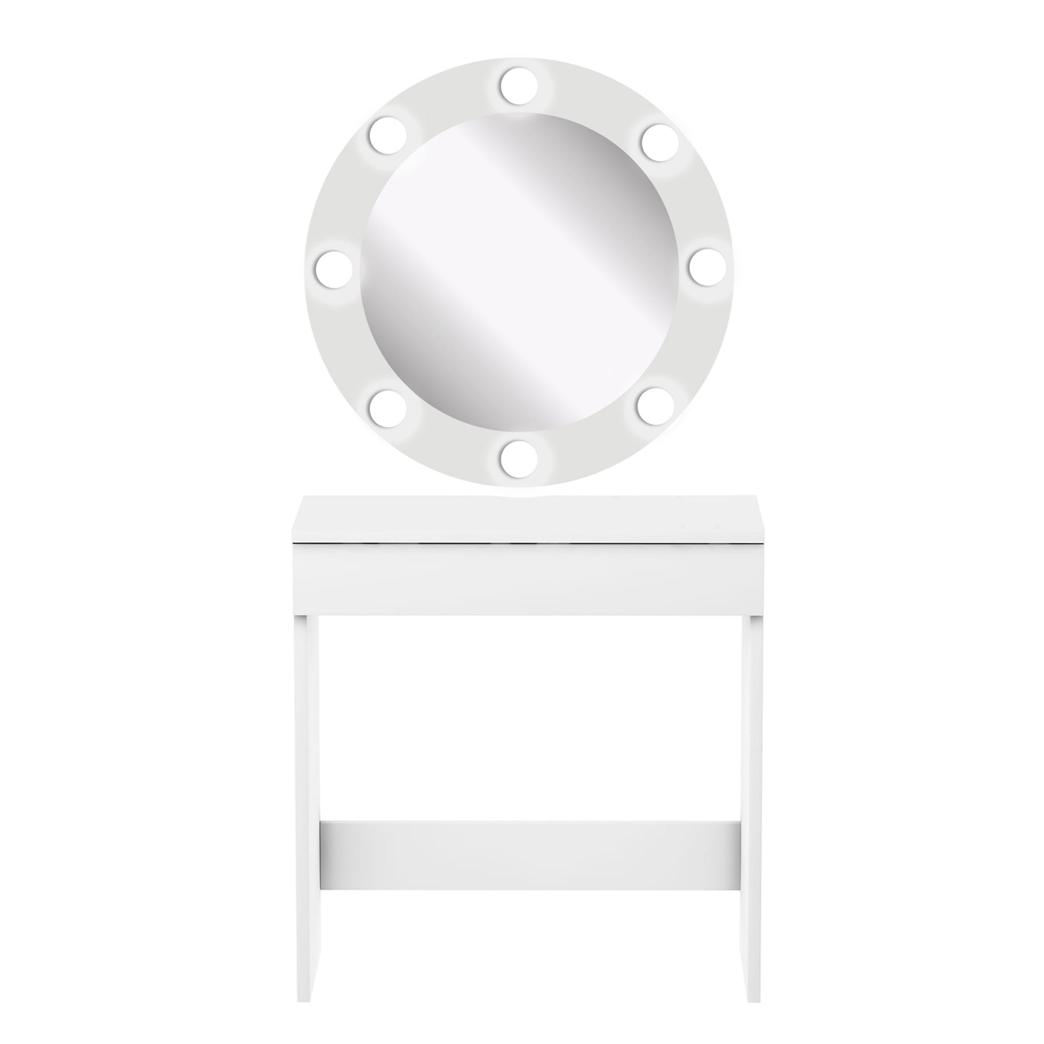 Toaletka MEGAN biały mat z lustrem okrągłym FI65 8 żarówek