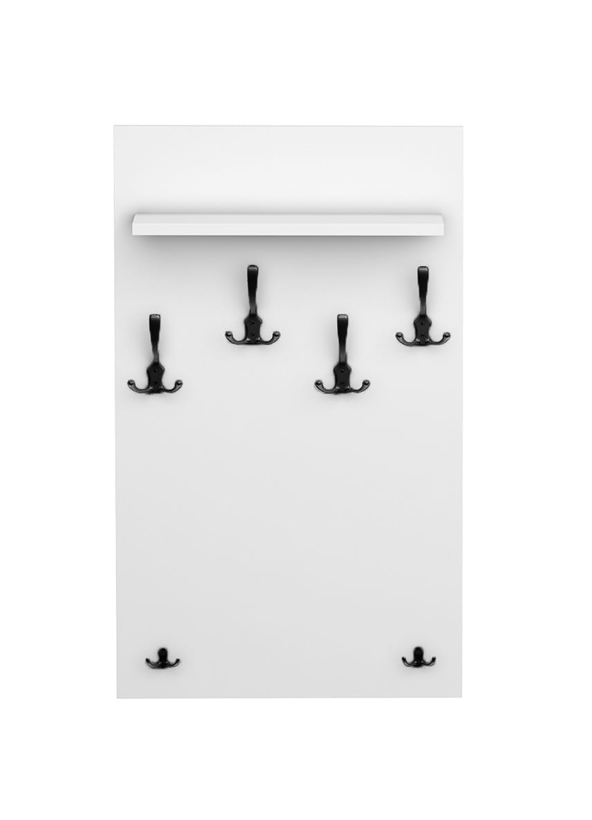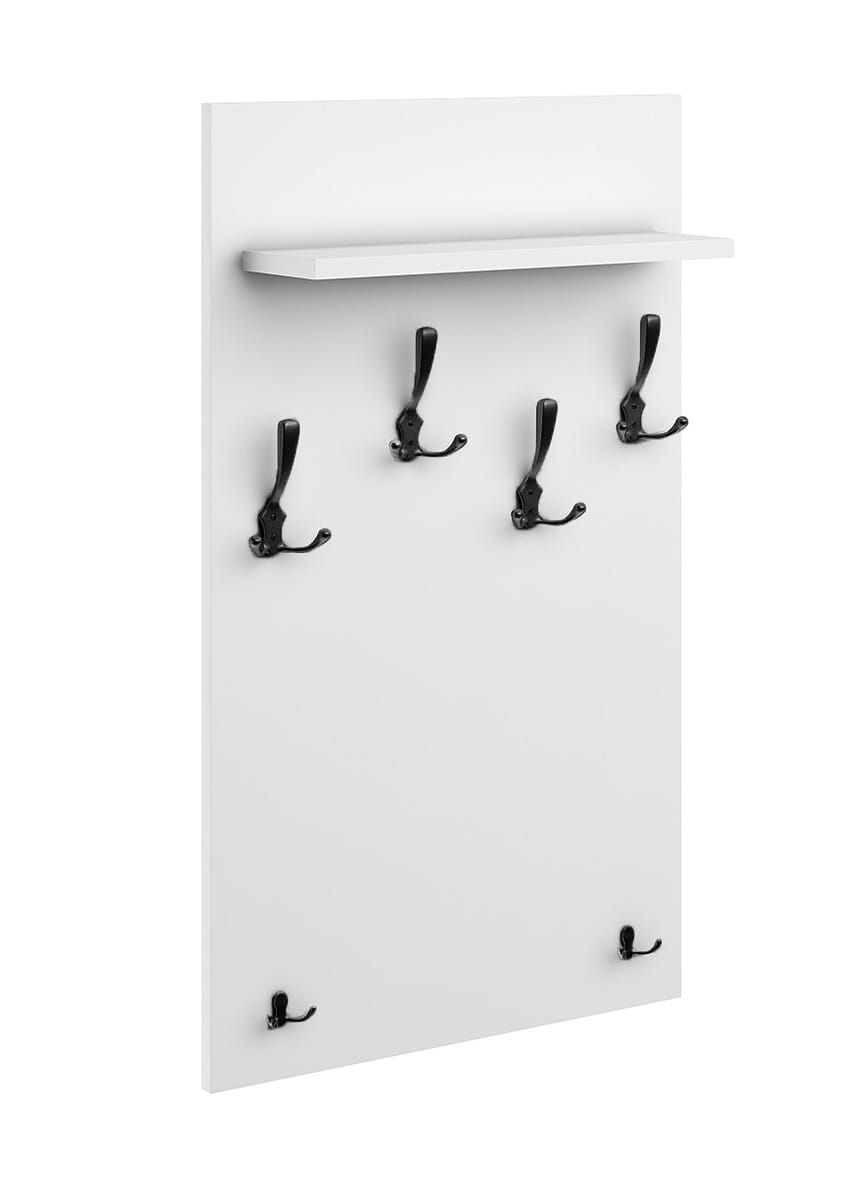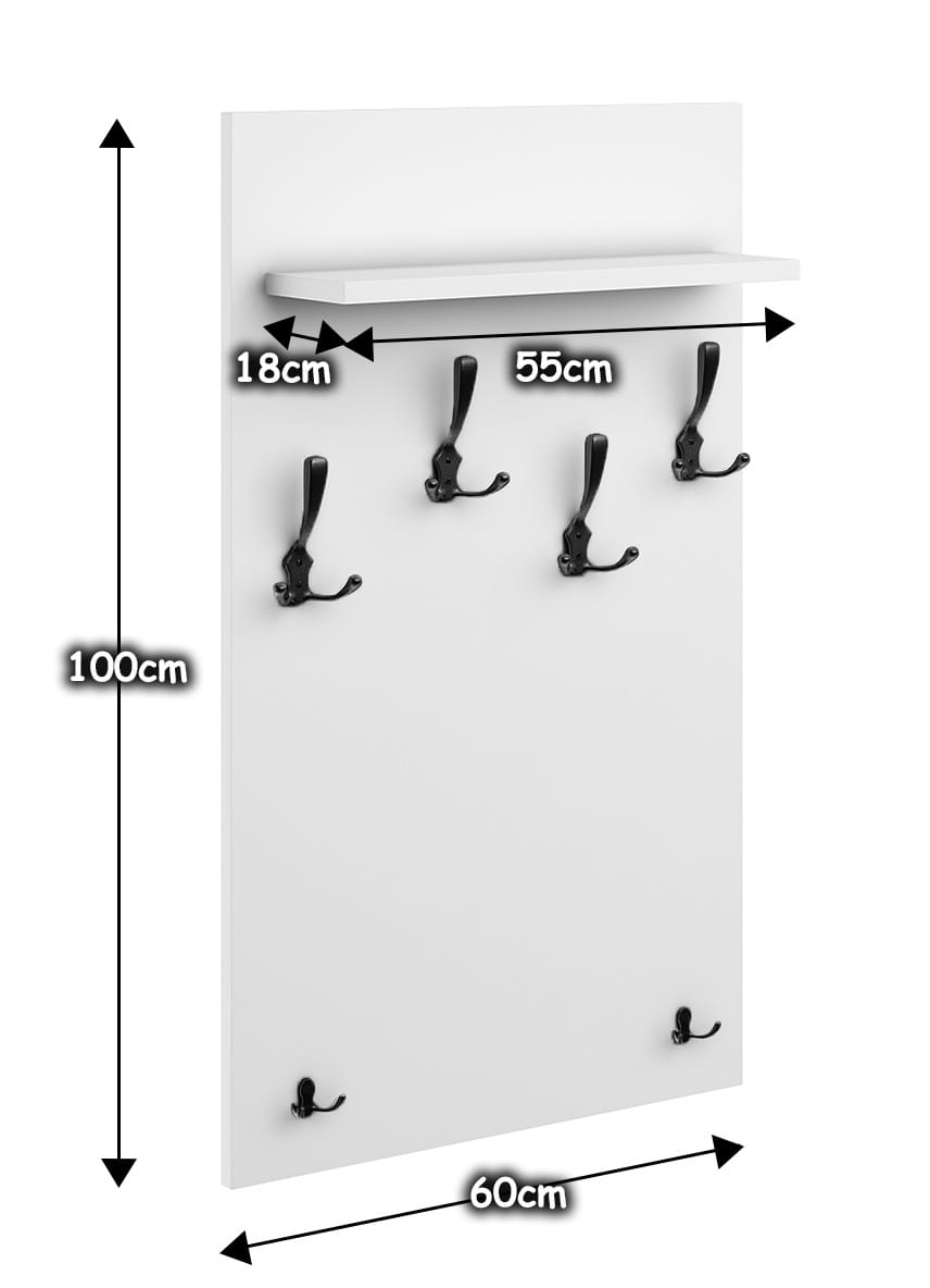 Szukasz prostego w swojej formie lecz eleganckiego wieszaka? Nasz wieszak na ubrania spełni Twoje oczekiwania. Duży panel zabezpieczy ścianę przed zabrudzeniem. Sześć wieszaków i praktyczna półka pozwolą Ci zapanować nad ładem i porządkiem.