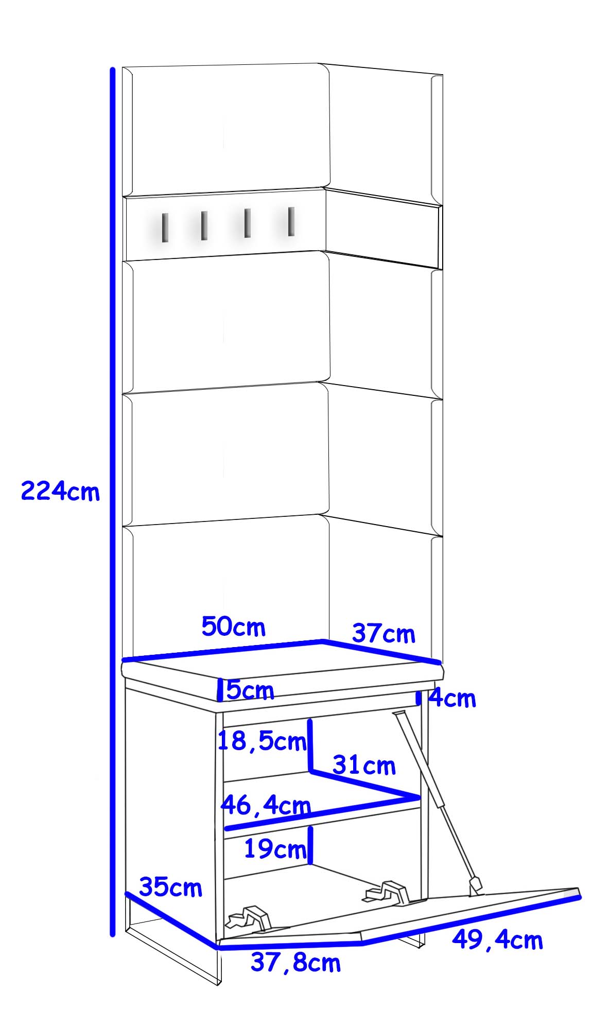 Wymiary szafki na buty z siedziskiem Megan 1P